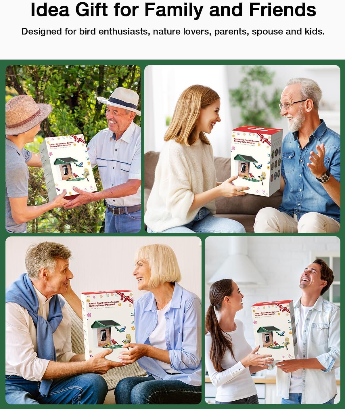 Bird Feeder with Camera-2K Live Video, Solar-Powered, Smart AI Identify Birds, 2L Food Capacity, Arrived Alerts, Bird Videos Storage, Mini Hummingbird Feeder for Watching Birds Outdoor
