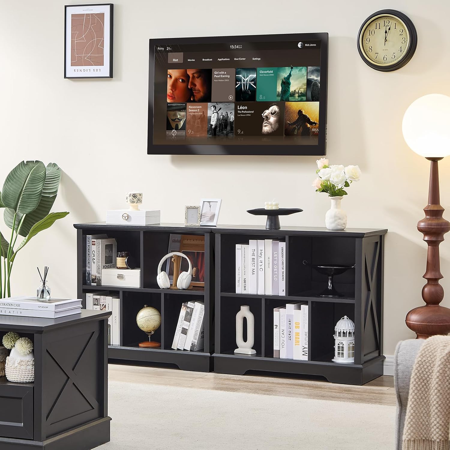 - Stable and Durable Structure: This farmhouse style bookshelf is durable and made of high-quality and durable wood, reinforced with heavy-duty frames. The X-shaped side panel not only enhances its visual appeal, but also contributes to its structural stability. The thickened base ensures a non swinging and anti tipping design, making it a safe and reliable choice for your home
