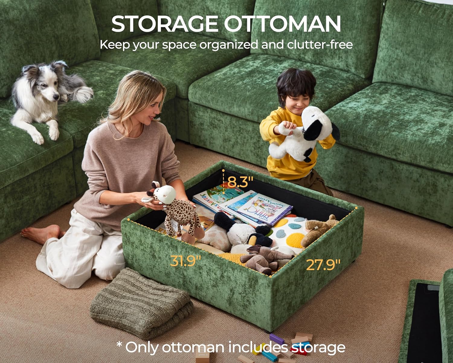 Oversized Modular Sofa Comfy Cloud Couch with Storage, Extra Deep Plush Sectional Sofa Set for Living Room, Covers Washable, Chenille, Olar (Green, 4-Seater with Ottoman, l-Shaped)