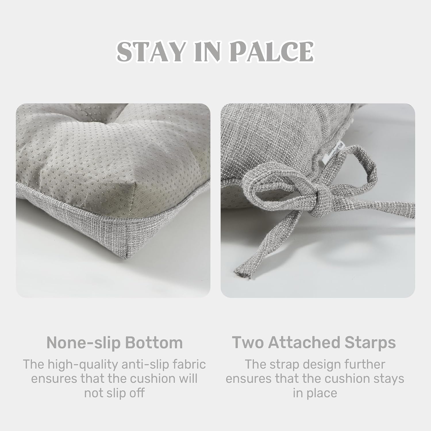 - Secure & Non-Slip Design: Featuring a non-slip bottom and adjustable straps, this cushion stays firmly in place on any chair, preventing unwanted slipping and shifting. The added security means you can enjoy a stable seating experience without constant adjustments. Plus, with multiple packs available, you can easily upgrade several chairs at once for a coordinated look.