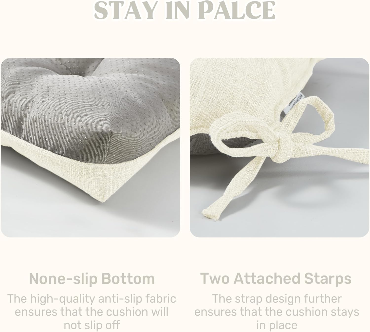 - Secure & Non-Slip Design: Featuring a non-slip bottom and adjustable straps, this cushion stays firmly in place on any chair, preventing unwanted slipping and shifting. The added security means you can enjoy a stable seating experience without constant adjustments. Plus, with multiple packs available, you can easily upgrade several chairs at once for a coordinated look.
