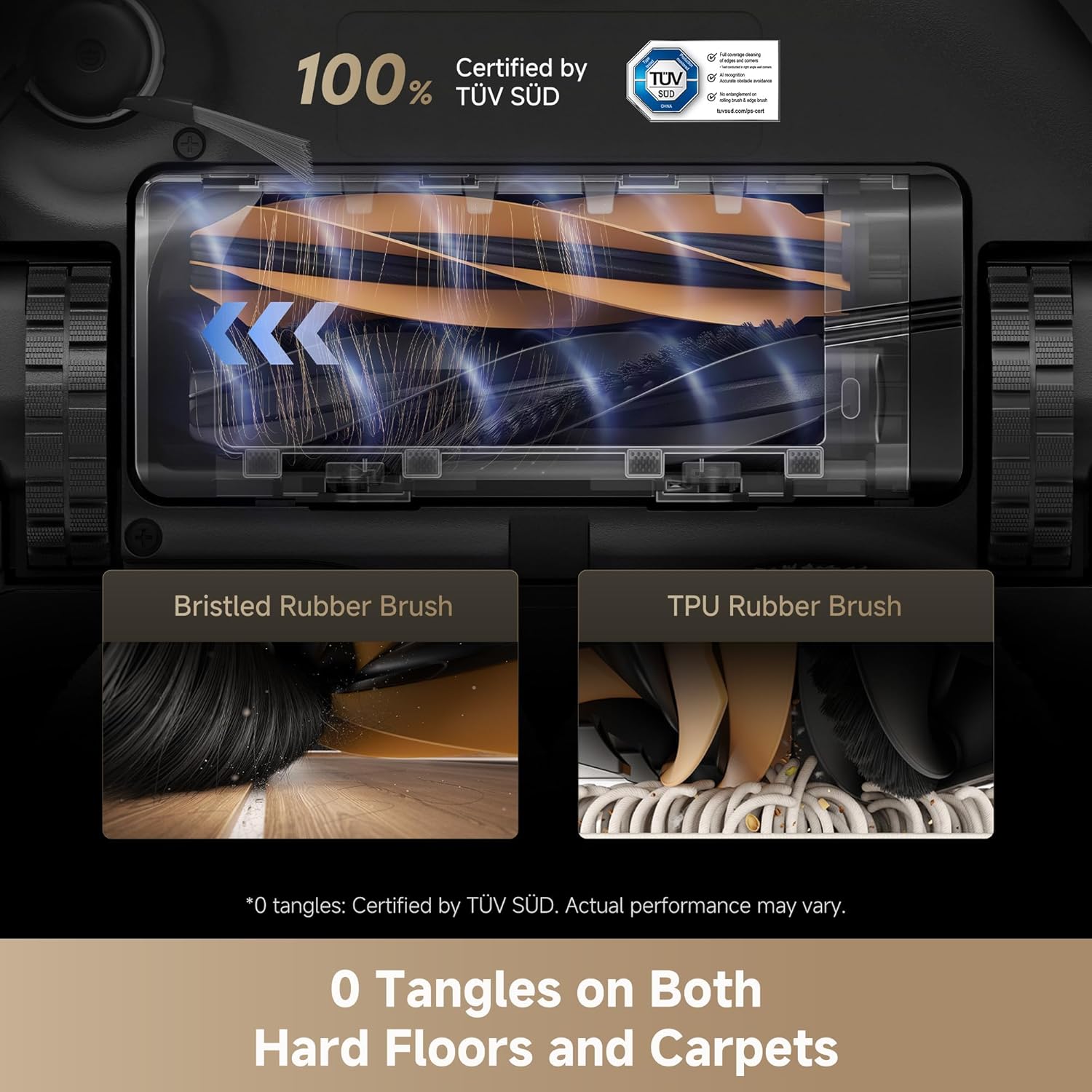 - Effective Hair Removal for a Tangle-Free Brush: Our brand new HyperStream Detangling DuoBrush features one bristled rubber brush and one TPU rubber brush to efficiently pick up debris from both hard floor gaps and carpets, and meanwhile preventing tangles and maintaining powerful cleaning performance.
