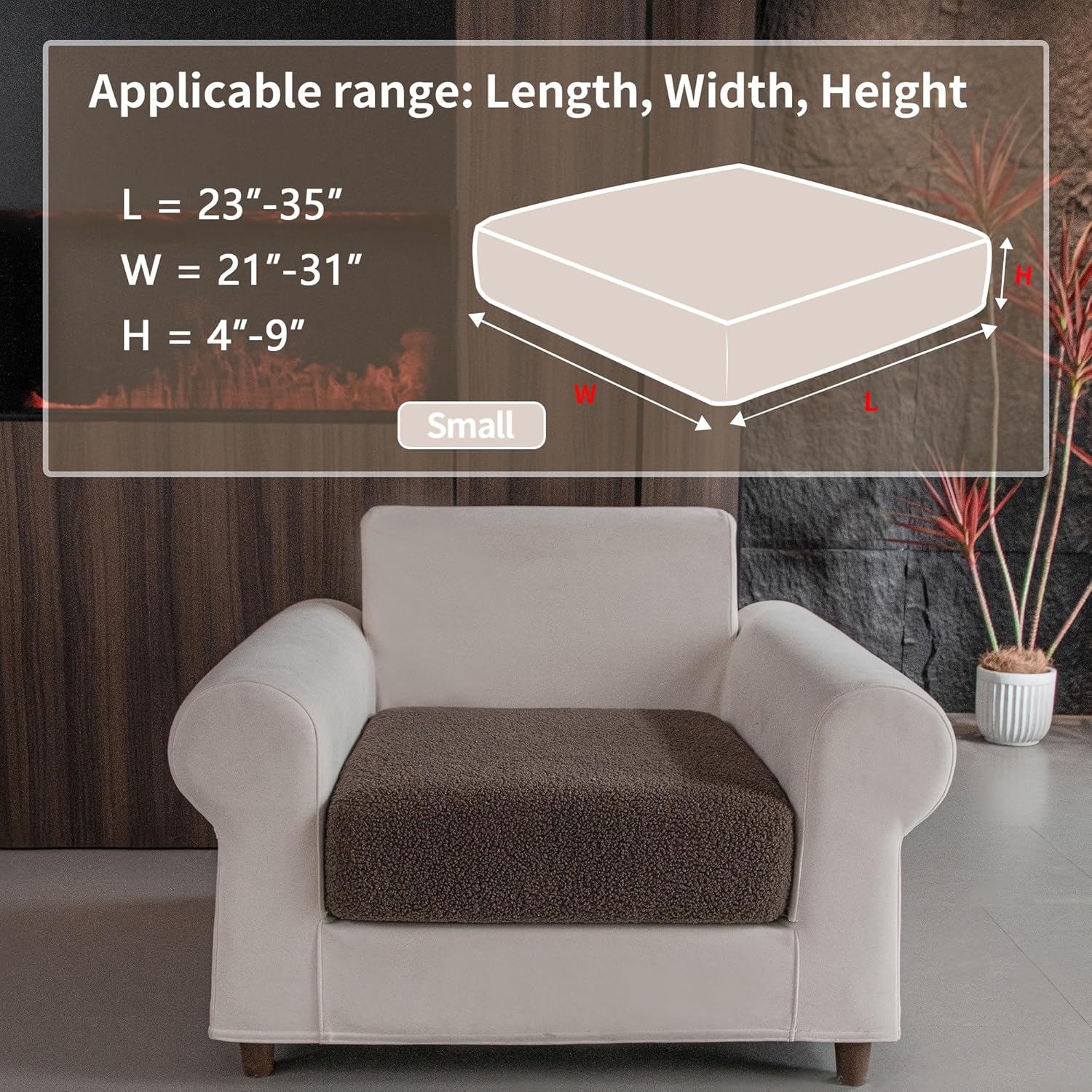 - 1.WHAT YOU WILL GET: 1*Seat Cushion Cover S. Suitable for sofa cushions with Length: 23-35 inches, Width: 21-31 inches, Height: 4-9 inches.This sectional couch cover is tailor-made for your sofa and can effectively resist stains, dust, pet hair and daily wear and tear.Made of soft Polar Fleece fabric, it adds a cozy and warm touch to your seat.