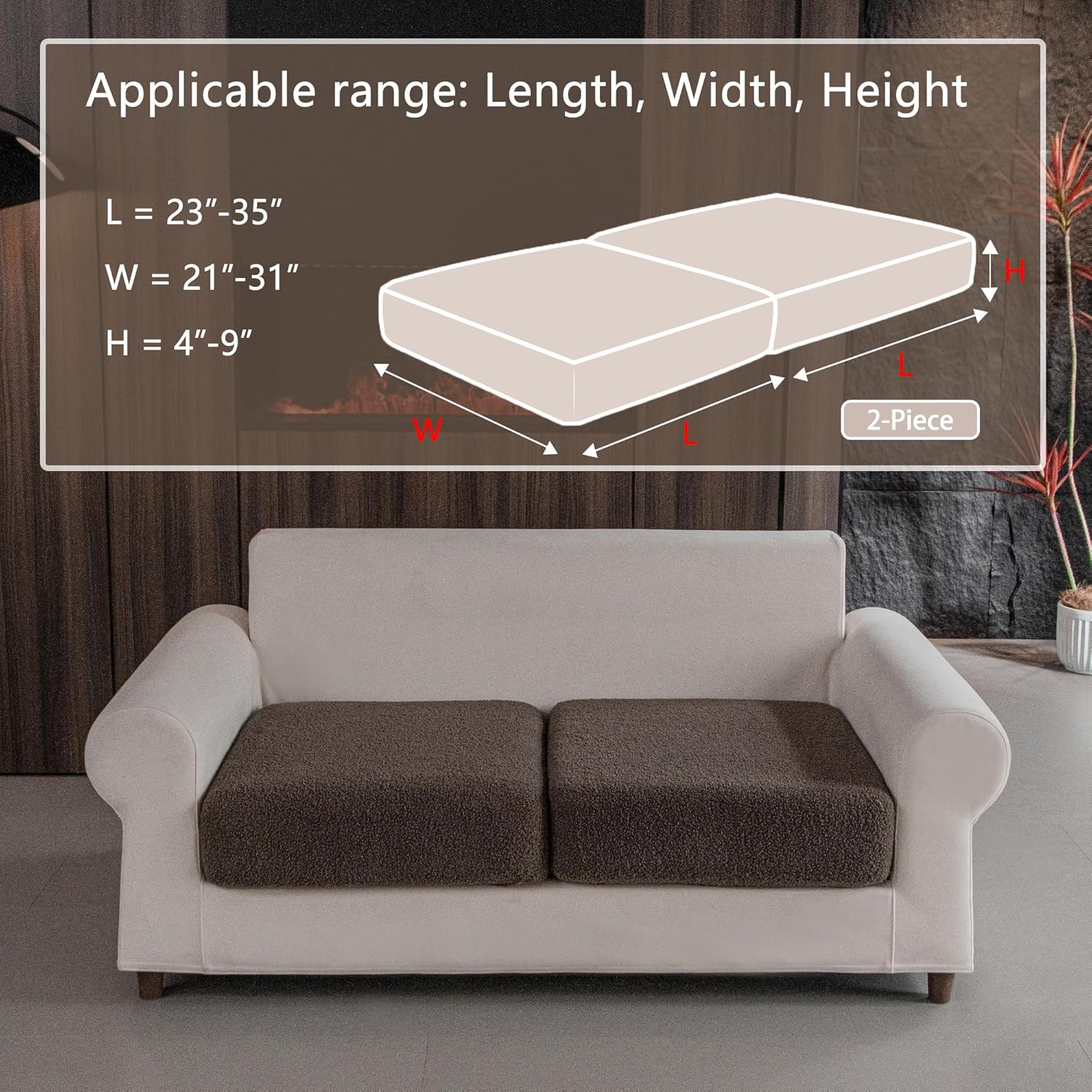 - 1.WHAT YOU WILL GET: 2*Seat Cushion Cover S. Suitable for sofa cushions with Length: 23-35 inches, Width: 21-31 inches, Height: 4-9 inches.This sectional couch cover is tailor-made for your sofa and can effectively resist stains, dust, pet hair and daily wear and tear.Made of soft Polar Fleece fabric, it adds a cozy and warm touch to your seat.