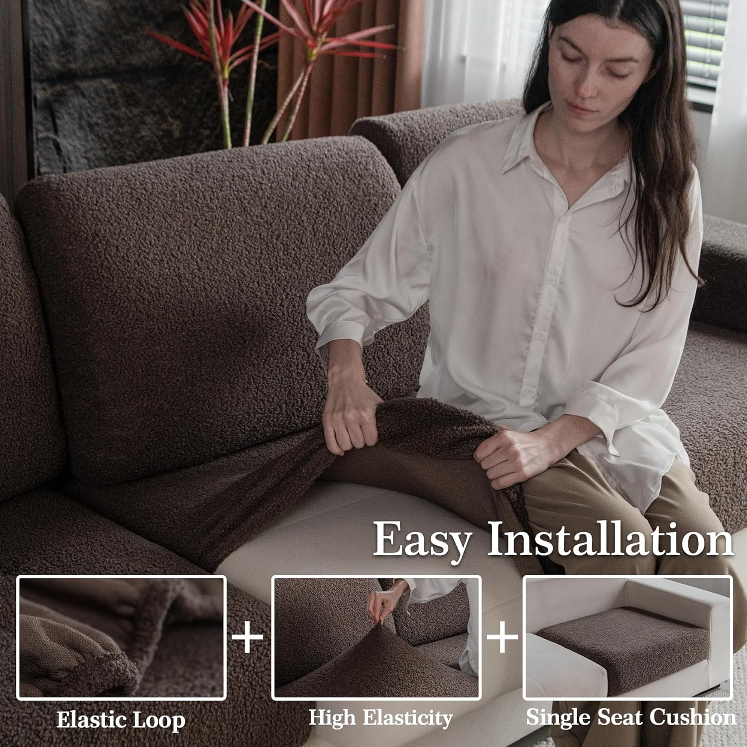 - 5. High-Quality Fabric: The L-shaped couch cover is made of 95% polyester and 5% spandex, which is highly elastic, soft and comfortable, and can be perfectly matched with most furniture. Please note that this sofa cover set does not include the backrest cover and armrest cover, if needed, please order them separately.Note: Due to differences in device displays, actual colors may vary slightly from images.