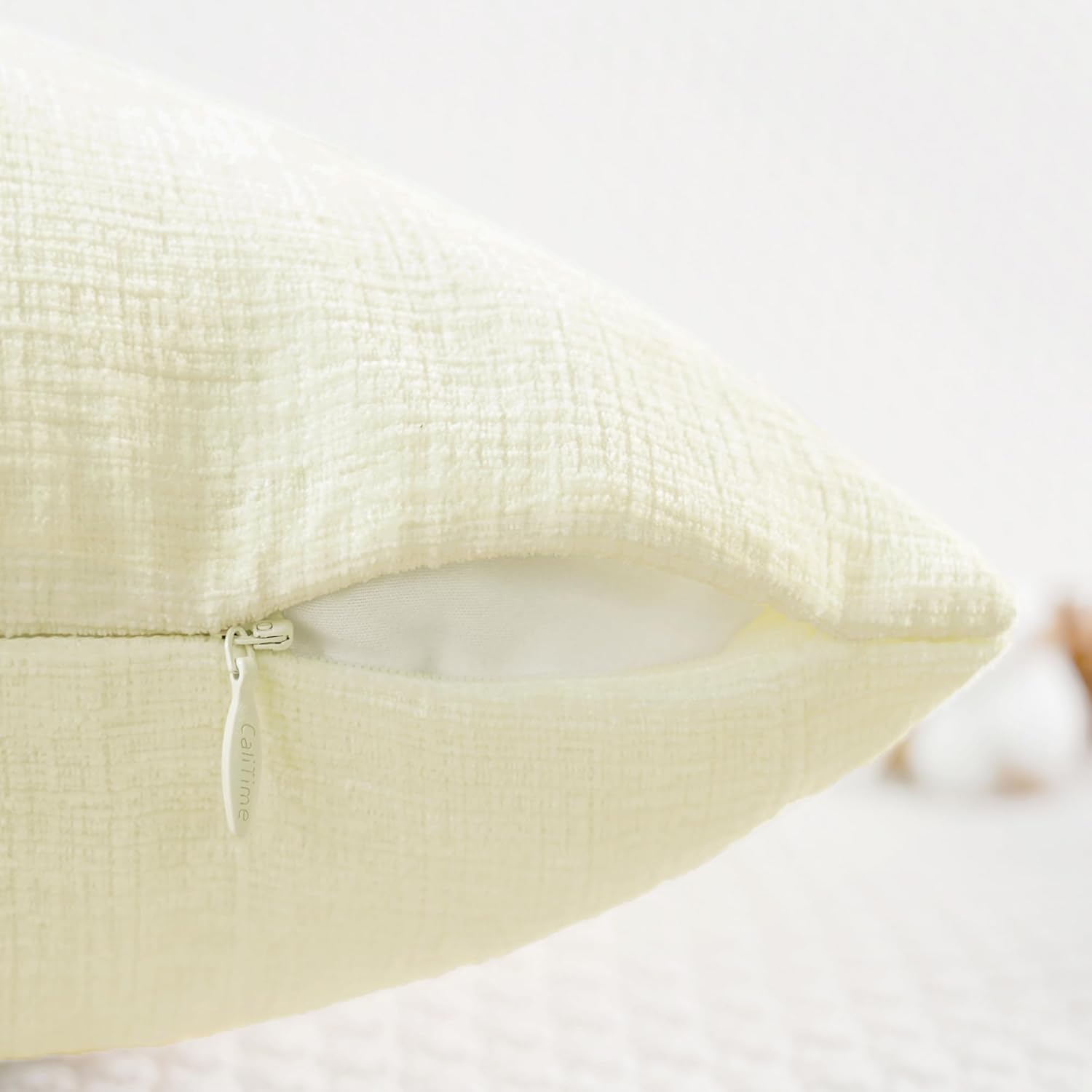 CaliTime Throw Pillow Covers Decorative 18 X 18 Inches Pack of 2 Cozy Chenille Cushion Cases for Couch Sofa Bed Living Room Home Beige