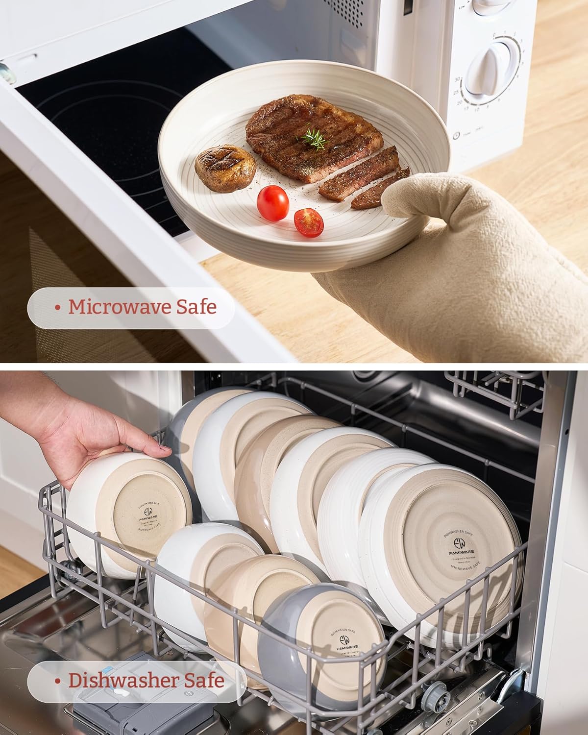 - DISHWASHER AND MICROWAVE SAFE - Our plate bowl have been tested for safety in the microwave and dishwasher by internationally accredited laboratories