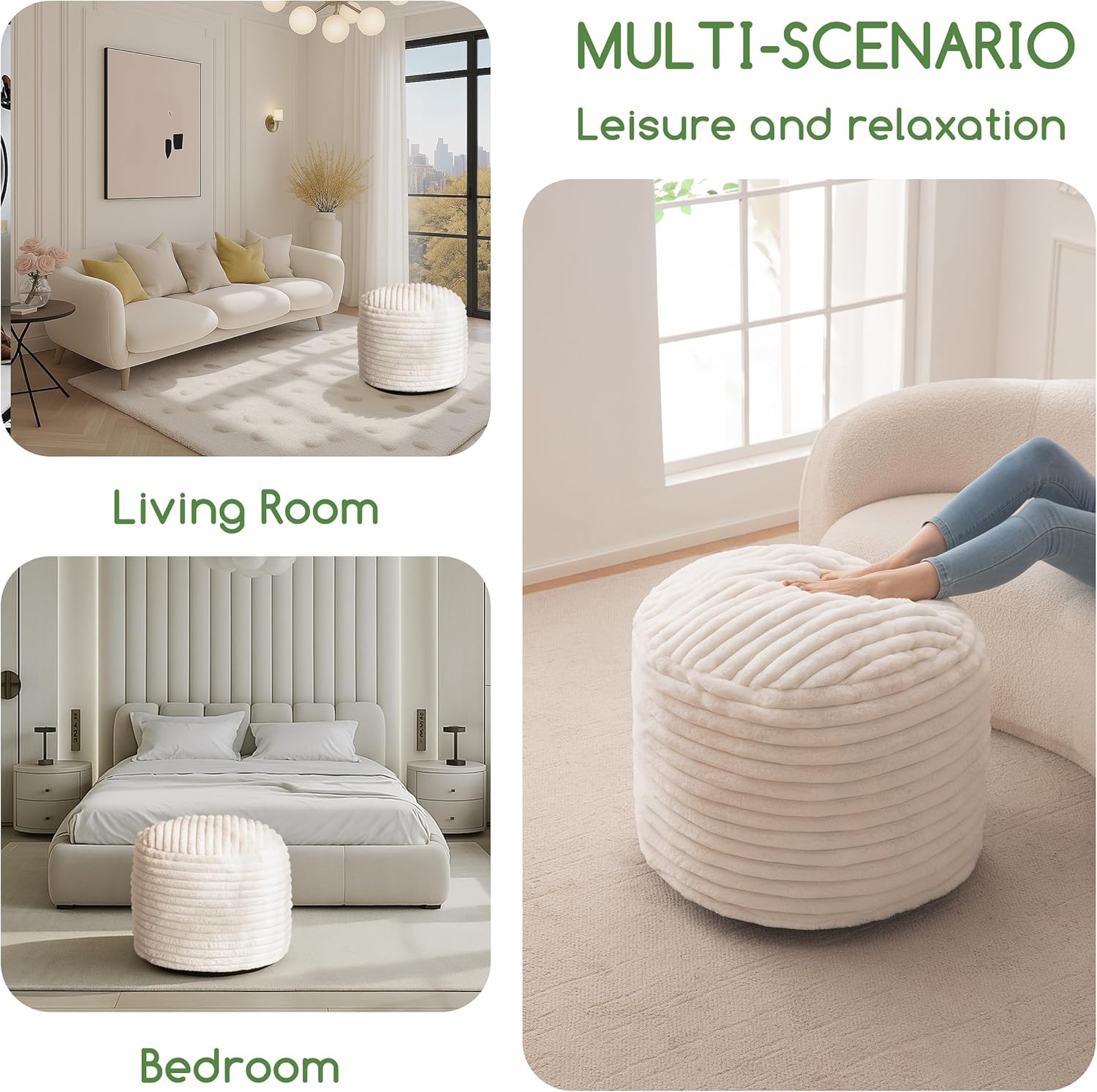 - 【REMOVABLE DESIGN】- For convenience and ease of use, this pouf ottoman comes stuffed with memory foam chunk pouf filler. Meanwhile, the cover can be easily set with the large round zipper on the bottom after cleaning.