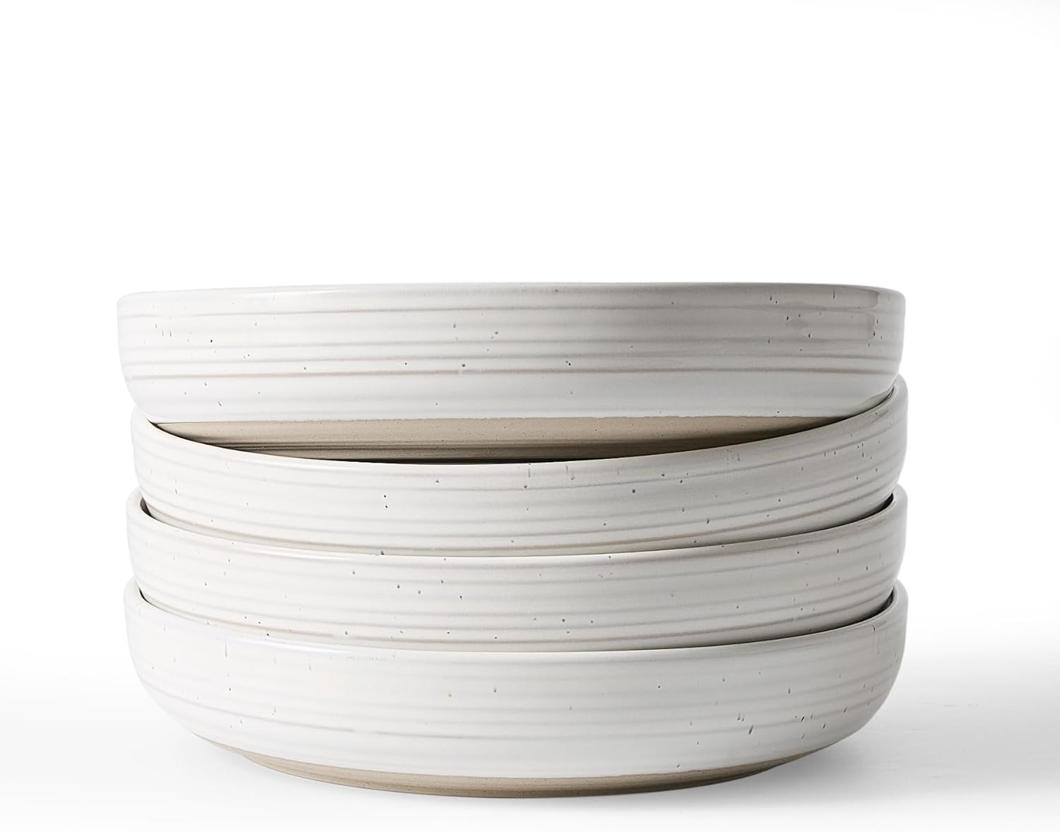 famiware Milkyway 33 oz Bowl Set, Pasta Bowls Set of 4, Salad Bowls, Double Reactive Glaze, Sturdy & Stackable, Ideal for Housewarming, Festivals, White with Speckles