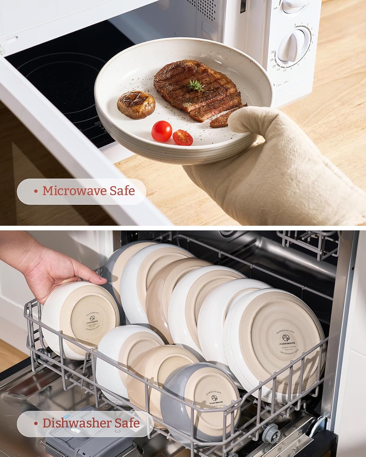 - DISHWASHER AND MICROWAVE SAFE - Our plate bowl have been tested for safety in the microwave and dishwasher by internationally accredited laboratories
