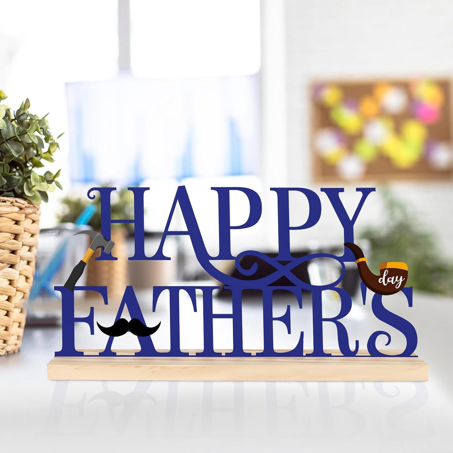 - Metal Happy Father's Day Decorations - The Package includes a blue and black metal Happy Father's Day sign and a wooden base. It can easily bring you a simple but warm feeling.