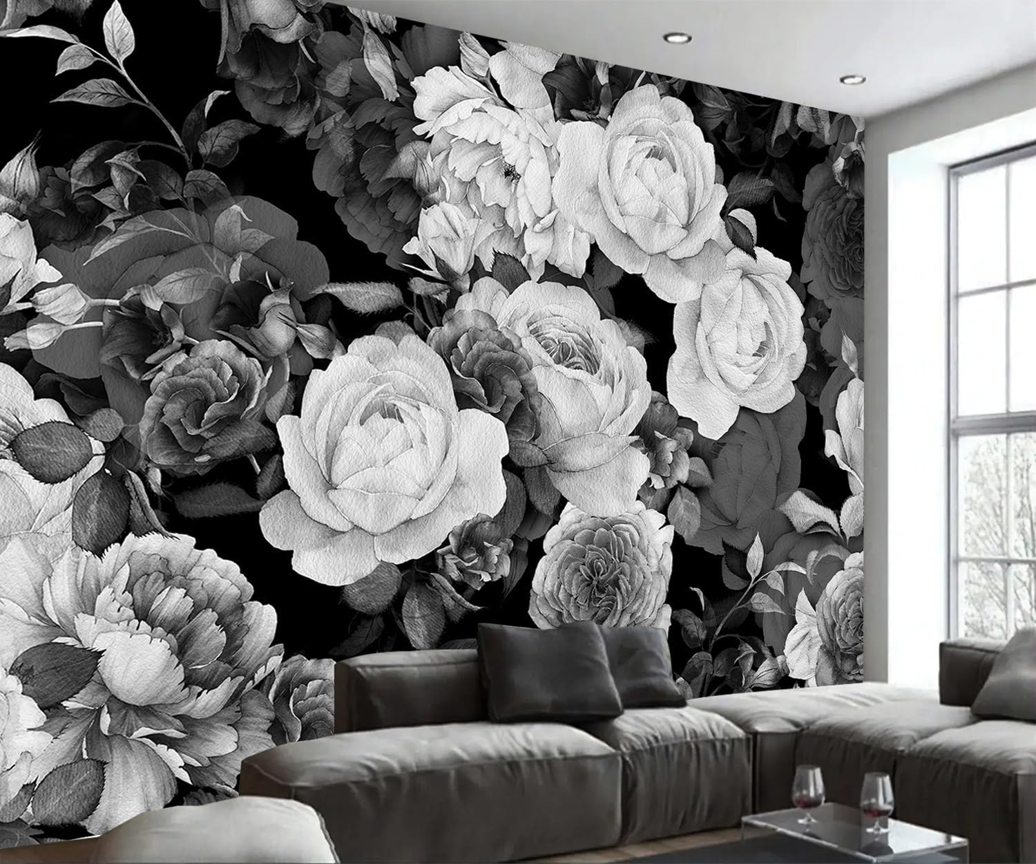 AFZEVEB-Dark Peony Wallpaper Watercolor Rose Wall murals for Bedroom 114"x74" (Not Peel and Stick)