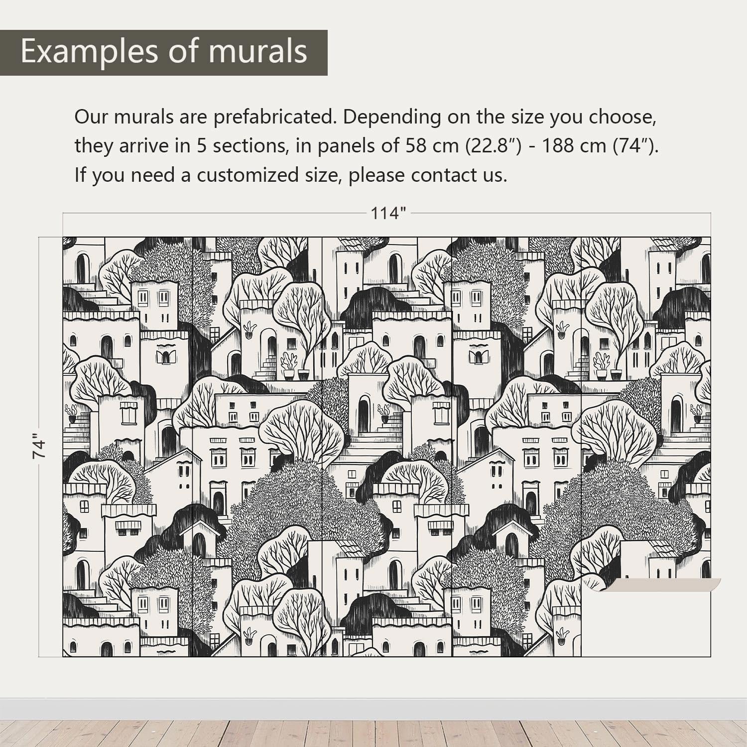 - Size note: Mural measures 114"W x 74"H and is divided into 5 sections, each section is labeled with a number underneath, eliminating the need to overlap patterns when installing.