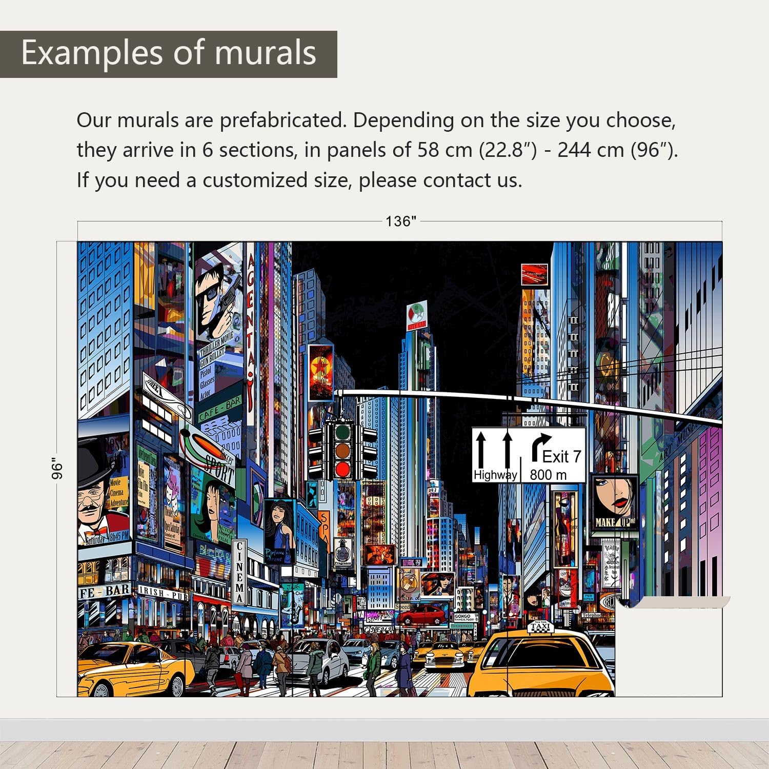 AFZEVEB-Hand-Painted New York City Wallpaper Wall murals for Bathroom 136"x96" (Not Peel and Stick)