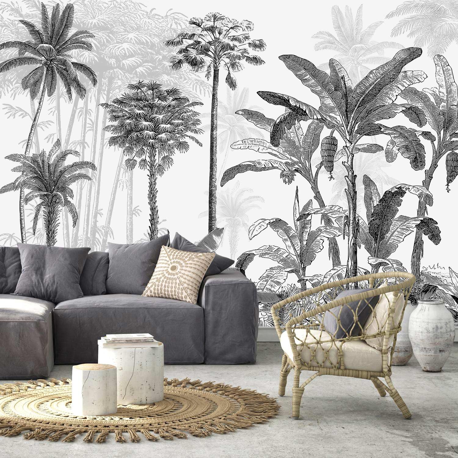 AFZEVEB-Black and White Jungle Wallpaper Hand-Painted Tree Wall murals for Bedroom 159"x107" (Not Peel and Stick)