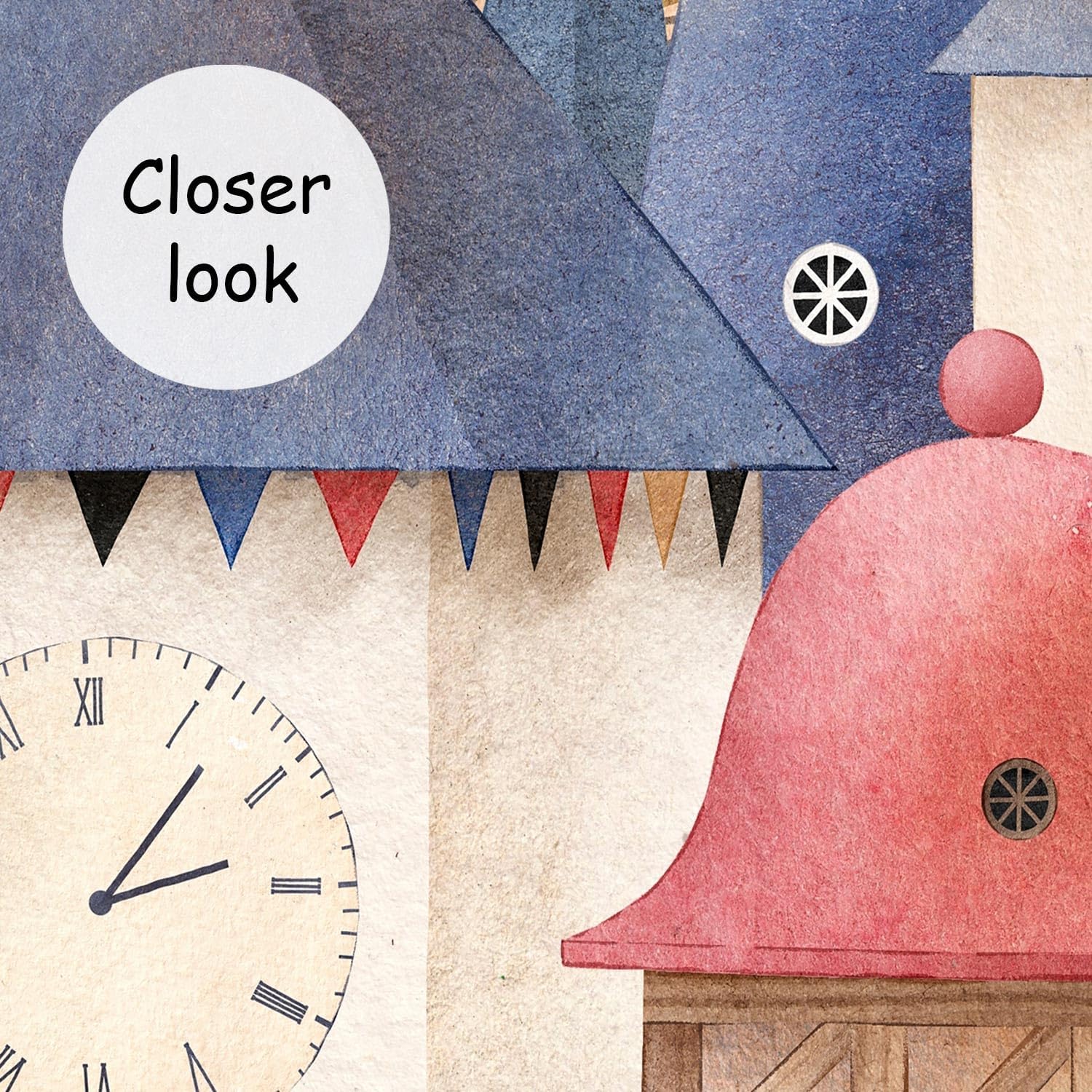AFZEVEB-Cartoon Watercolor House Nursery Wallpaper Wall murals for Kids Room 136"x96" (Not Peel and Stick)