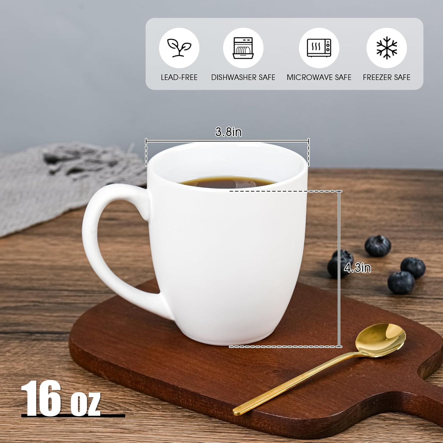 - The 16oz coffee mug set comes with 6 mugs.This ceramic cup set is pure white inside and matte white outside, simple and generous, and able to match different home decor styles. suitable for a family's use