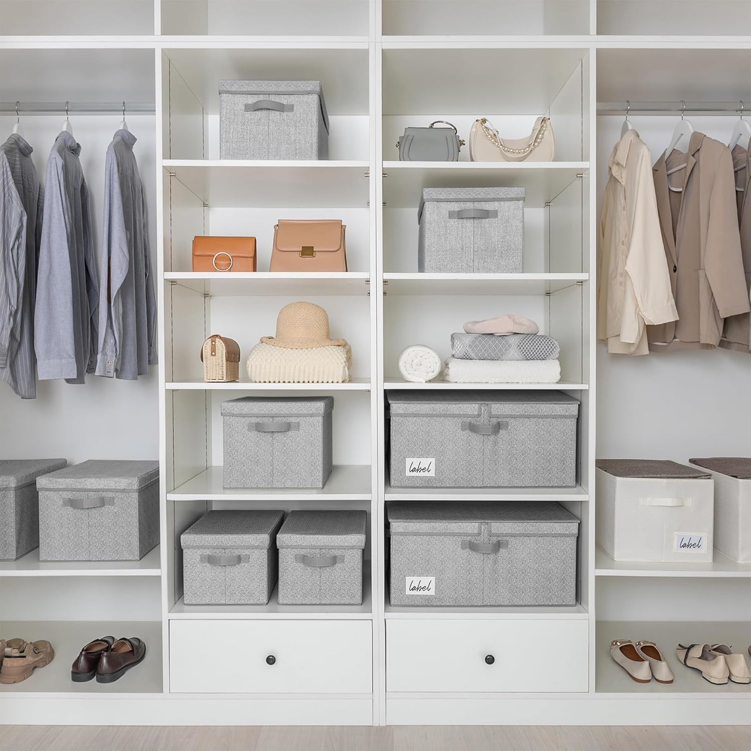 - 【Versatile Function】The large fabric storage box with lid is perfect for organizing the closet, shelf, bedroom, play room, living room, wardrobe, laundry room, office, RV, and camping.