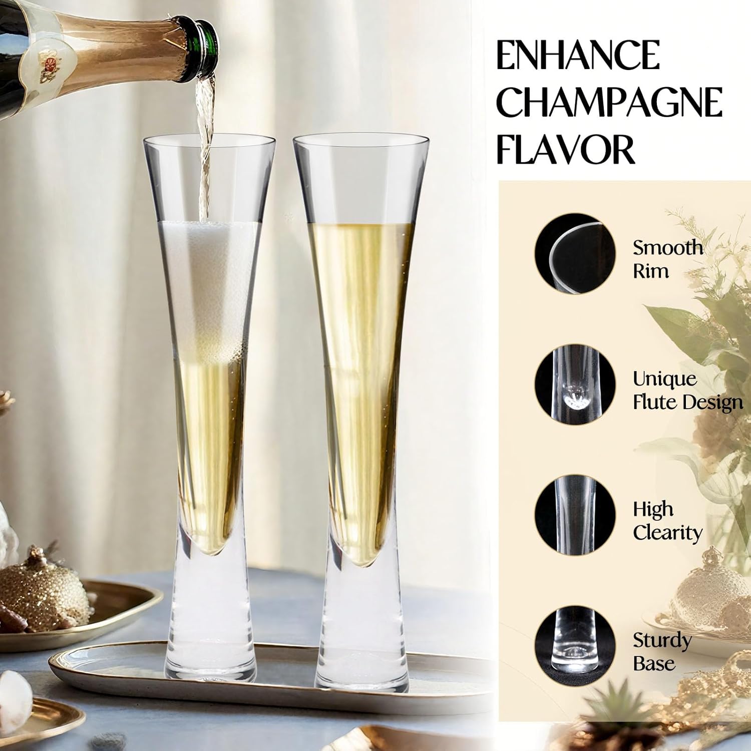 Champagne Flutes Set of 2, Hand Blown Crystal Champagne Glasses, Modern Unique Design, Lead-Free Prosecco Flutes, Elegant Toasting Glasses Gift for Wedding, Anniversary, Birthday, Christmas