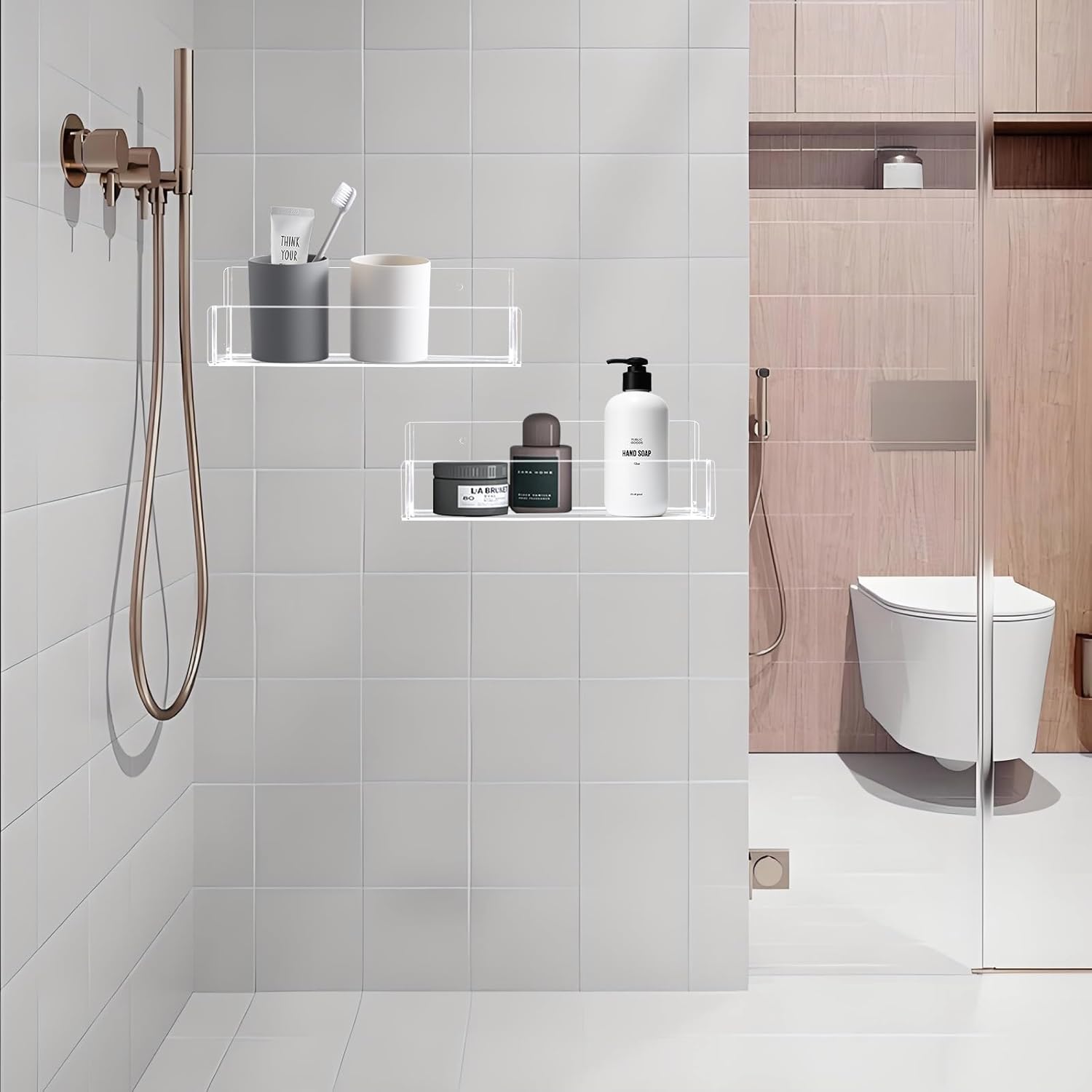 Acrylic Spice Rack Wall Mount-9 Inch, Clear Spice Shelf Storage Holder, 4 Pack Hanging Seasoning Rack Organizer for Cabinet Door, Cupboard or Wall Kitchen (Adhesive or Screw)