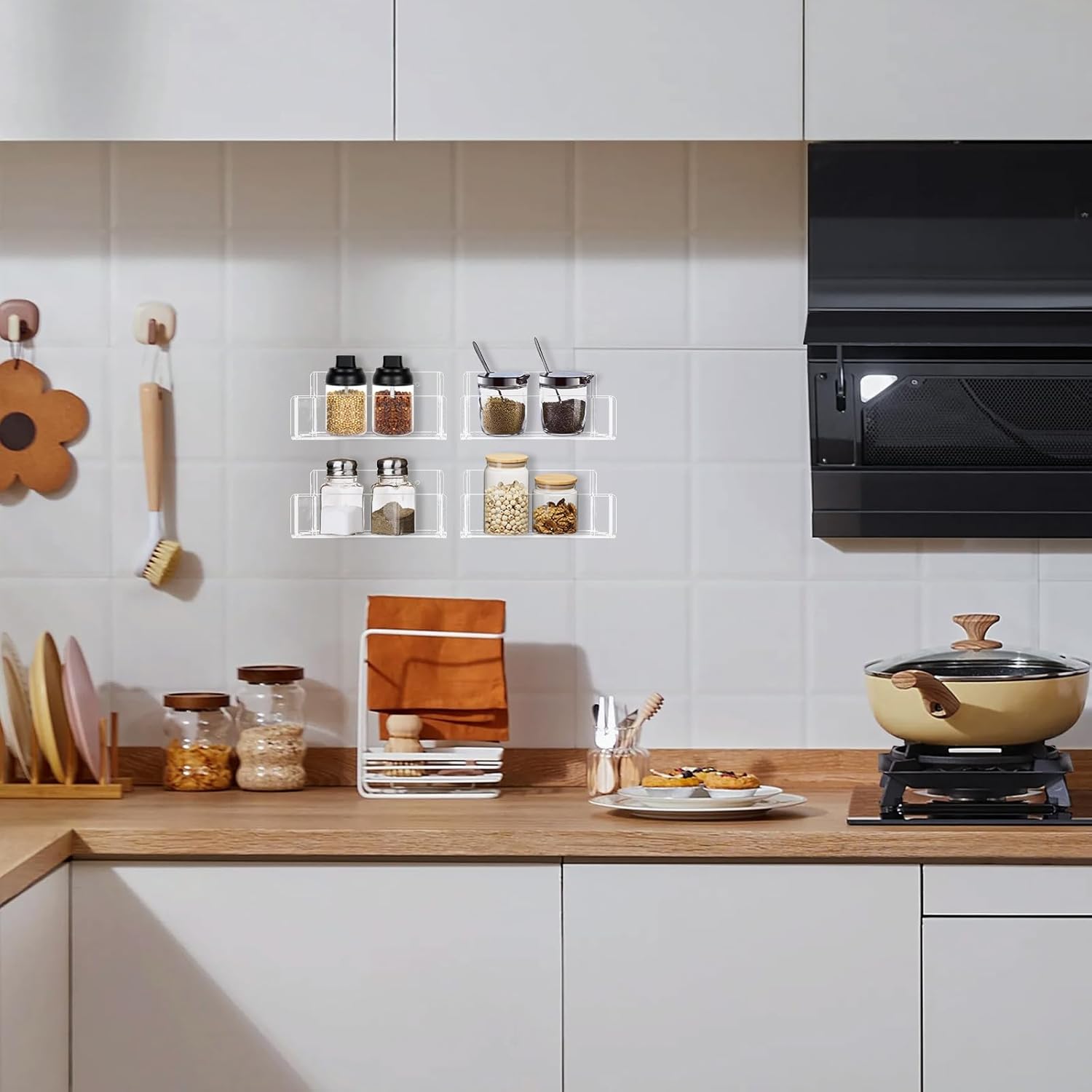 - 𝗦𝗮𝗳𝗲𝗿 𝗣𝗿𝗼𝘁𝗲𝗰𝘁𝗶𝗼𝗻 - The wall mounted spice rack has a removable end cover at the end of the shelf to ensure the safety and stability of the items placed.