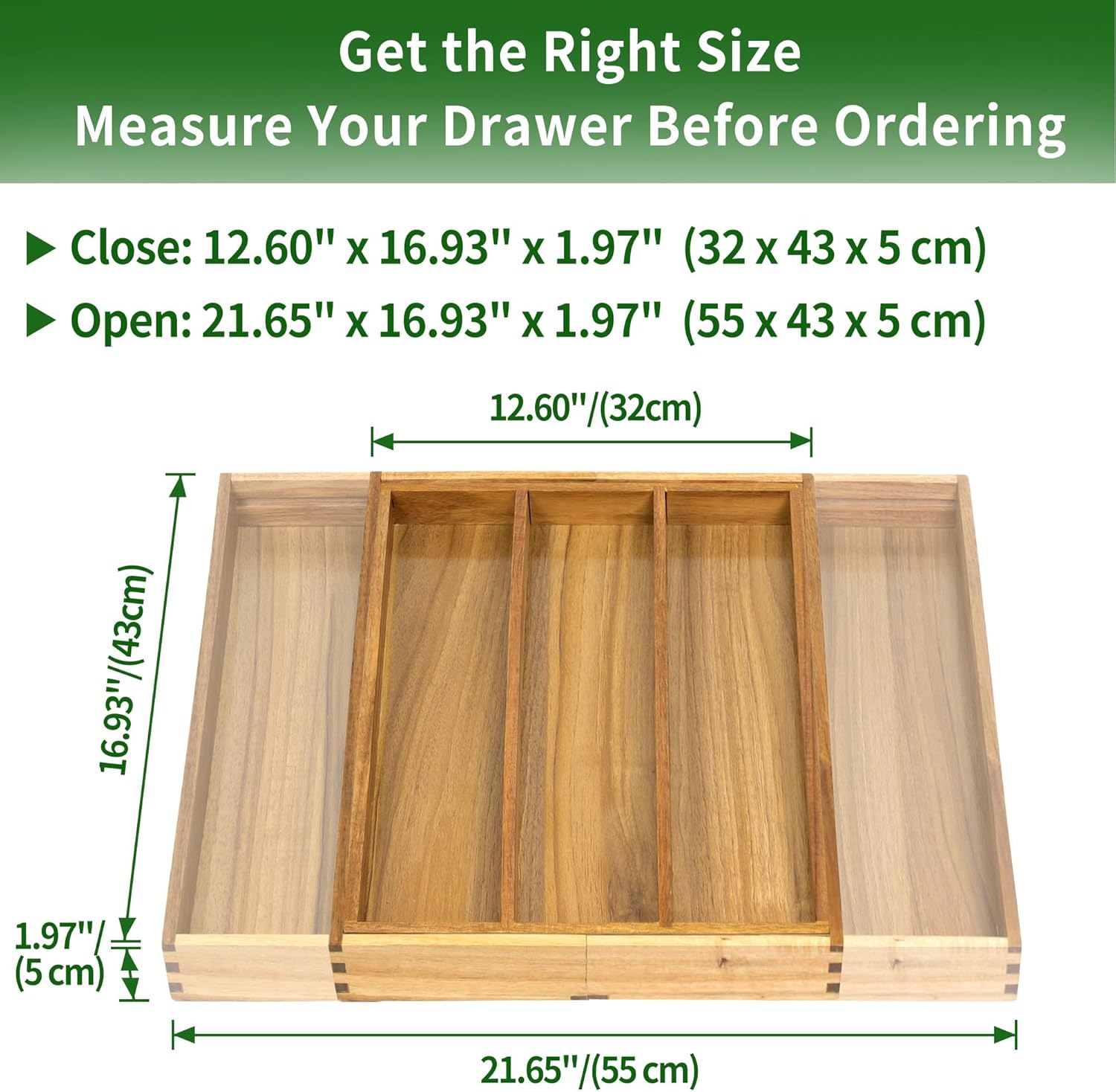 - PREMIUM MATERIAL: Crafted from beautiful acacia wood with 5 spacious compartments for organized storage of flatware and kitchen tools