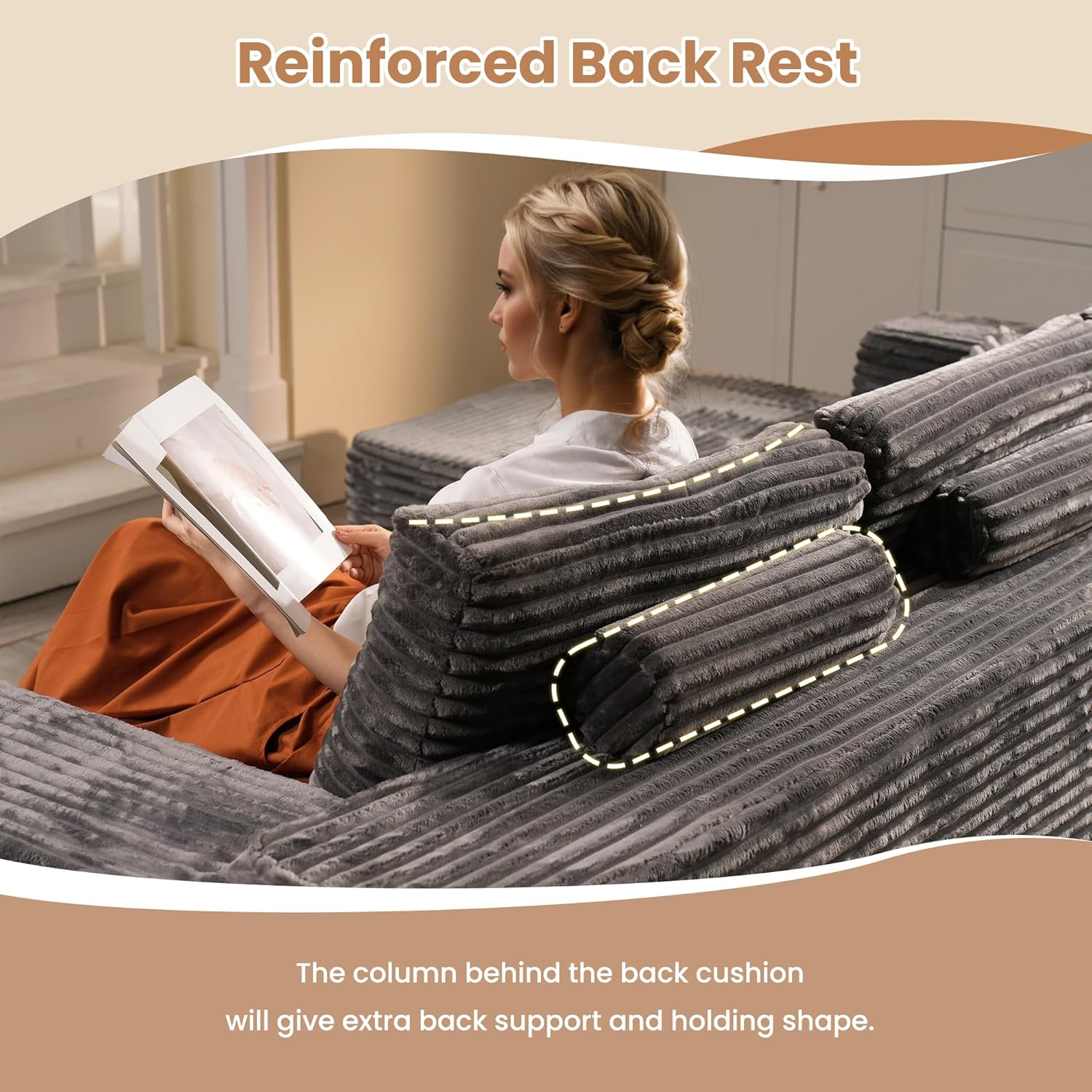 HOOOWOOO Cloud Sectional Couches for Living Room,Modular Sectional Sofa No Assembly,133X108 Inch Plush Corduroy Large U Shaped Floor Couch Set with Deep Seat Left Chaise(Gray)