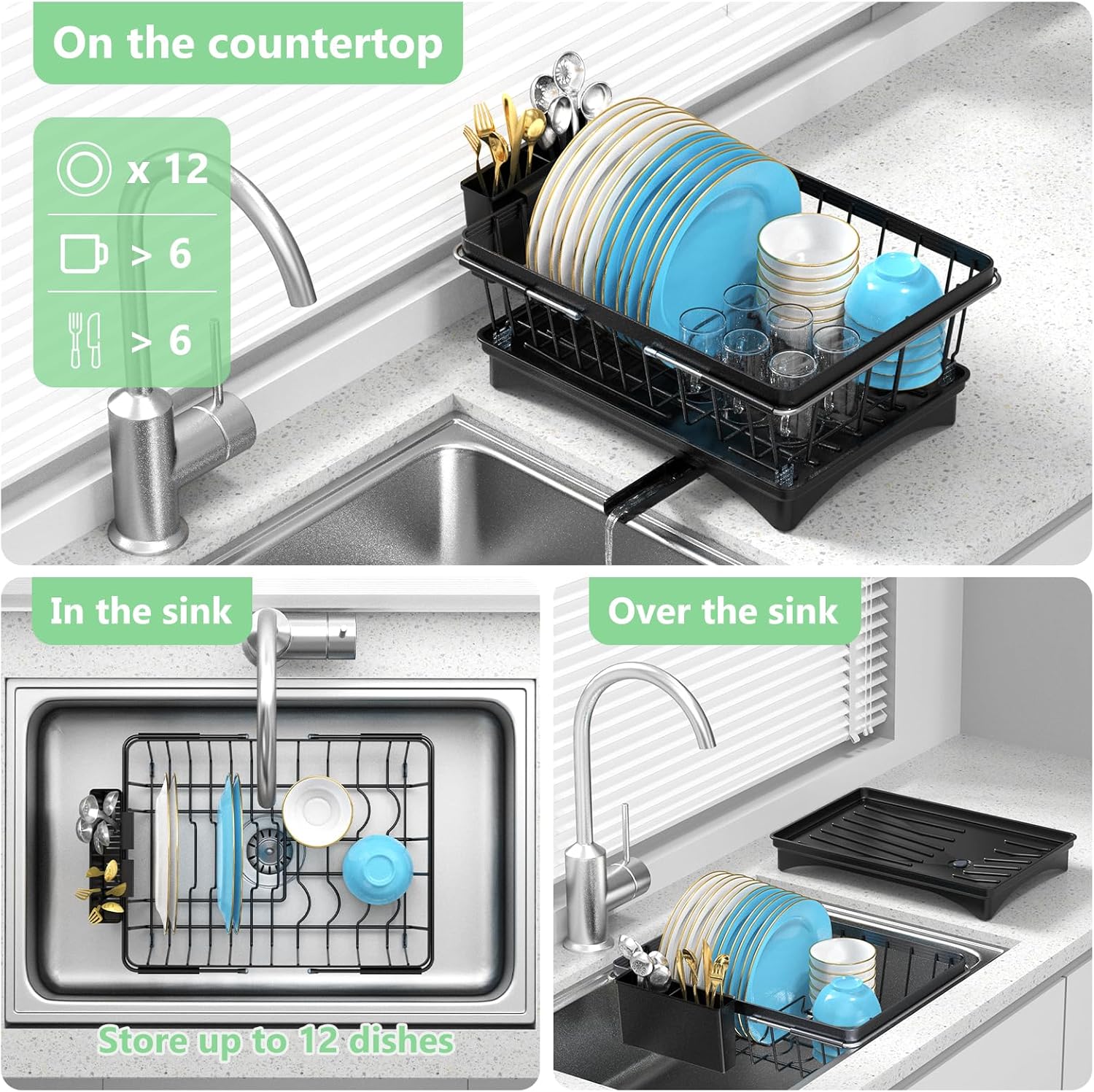 - EXPANDABLE DESIGN: LEMIKKLE expandable Dish Drying Rack Over The Sink measures 14.5"L x 10.6"W x 4"H (Please check the dimension before purchase, the size is mini), the supporting bars is adjustable from 14” to 19.2”. With the compact size and expandable design, this dish drying rack is a perfect choice for 2-4 people or limited spaceEXPANDABLE DESIGN: LEMIKKLE expandable Dish Drying Rack Over The Sink measures 14.5"L x 10.6"W x 4"H (Please check the dimension before purchase, the size is mini), the supporting bars is adjustable from 14” to 19.2”. With the compact size and expandable design, this dish drying rack is a perfect choice for 2-4 people or limited space
