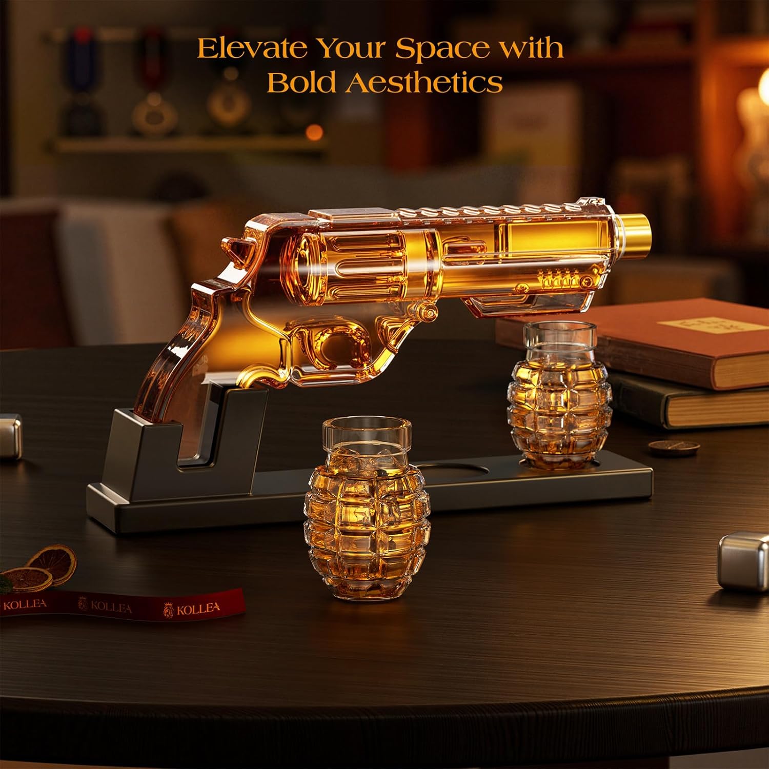 Kollea Whiskey Decanter Set with Grenade-Shaped Shot Glasses, Anniversary Birthday Gifts for Men Who Have Everything, Holiday Whiskey Gifts for Men, Father, Husband, Boyfriend & Military Enthusiasts
