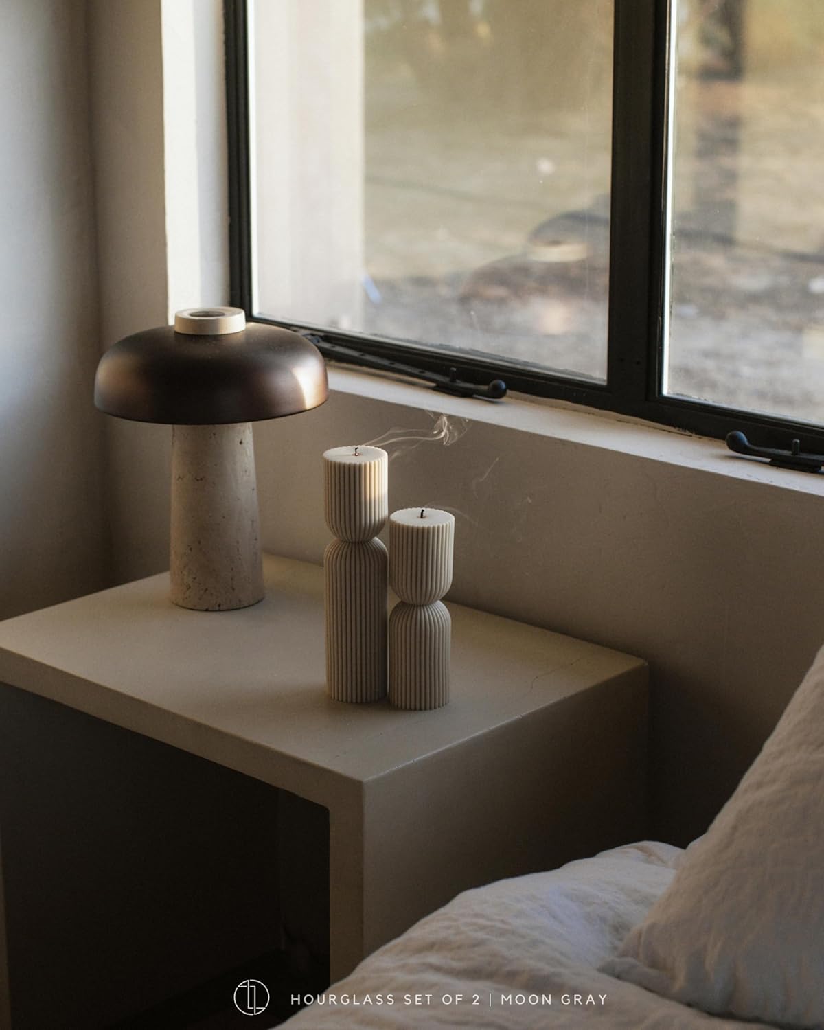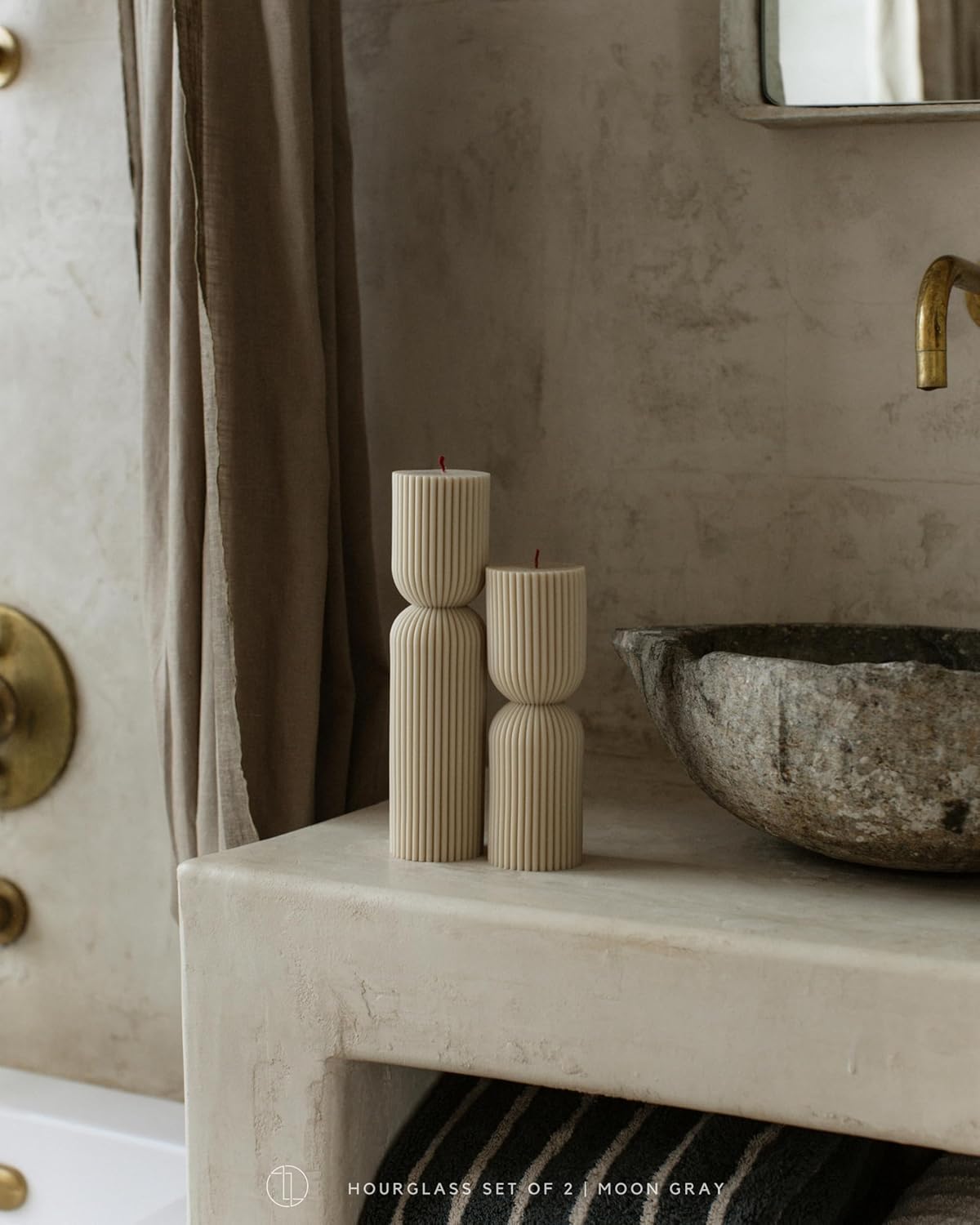 LAWA Hourglass Pillar Candle - Large Beautiful Handmade Pillar Scented Soy Wax Candle Elegant Bubble Aesthetic Candle Housewarming Gift Home Room Shelf Decor Idea Moon Gray (Set of 2)