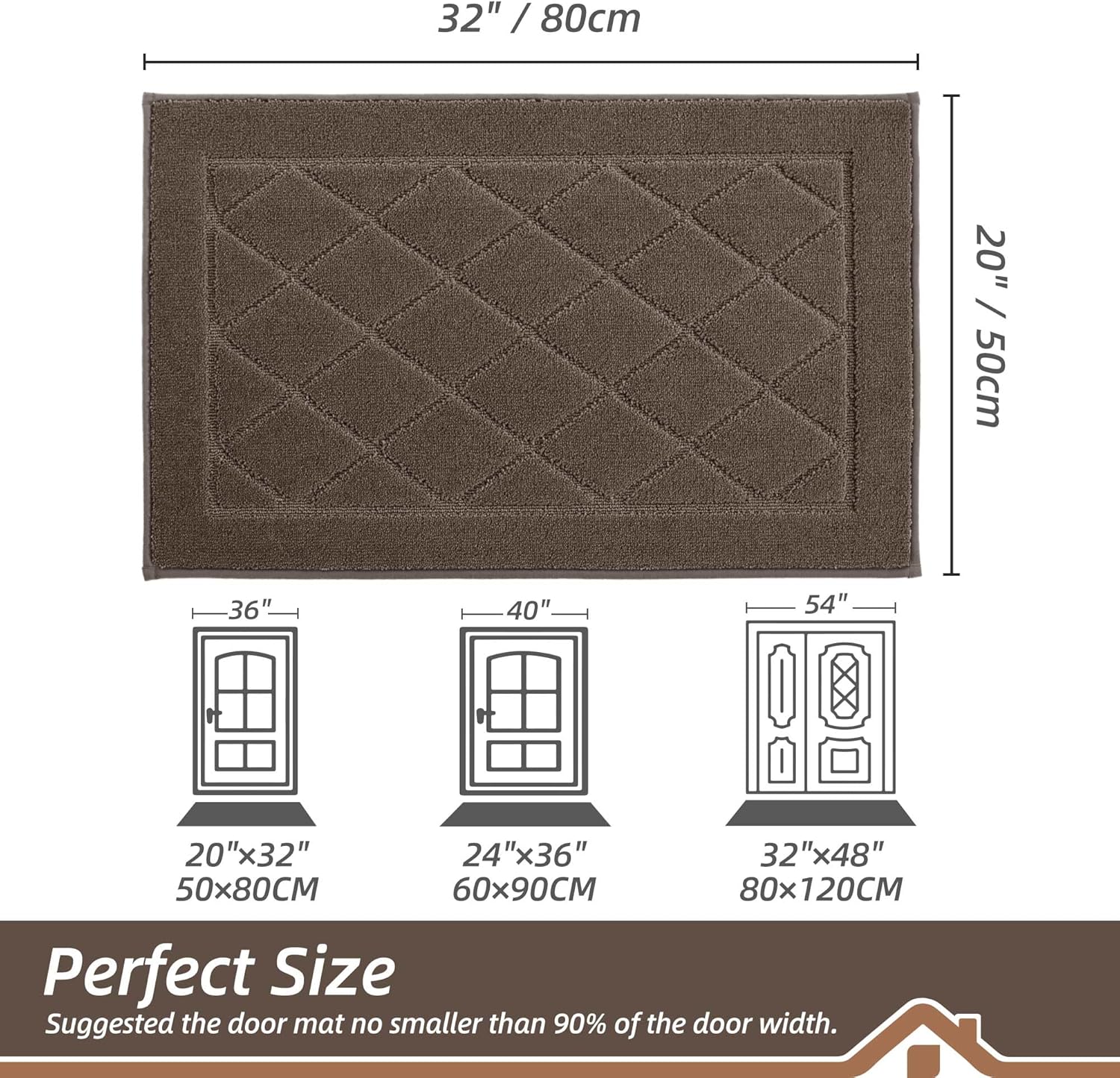 - Trap Dirt and Moisture: Door mats are made of premium Polyester and extremely dense yarns, which are extremely absorbent and stain-resistant. They absorb moisture well and quickly and also scrape dirt off the shoes, keeping the floors clean and dry. Widely used in any weather, especially rainy, snowy or muddy weather. Suitable for front door, back door, entryway, indoor entrance, etc.