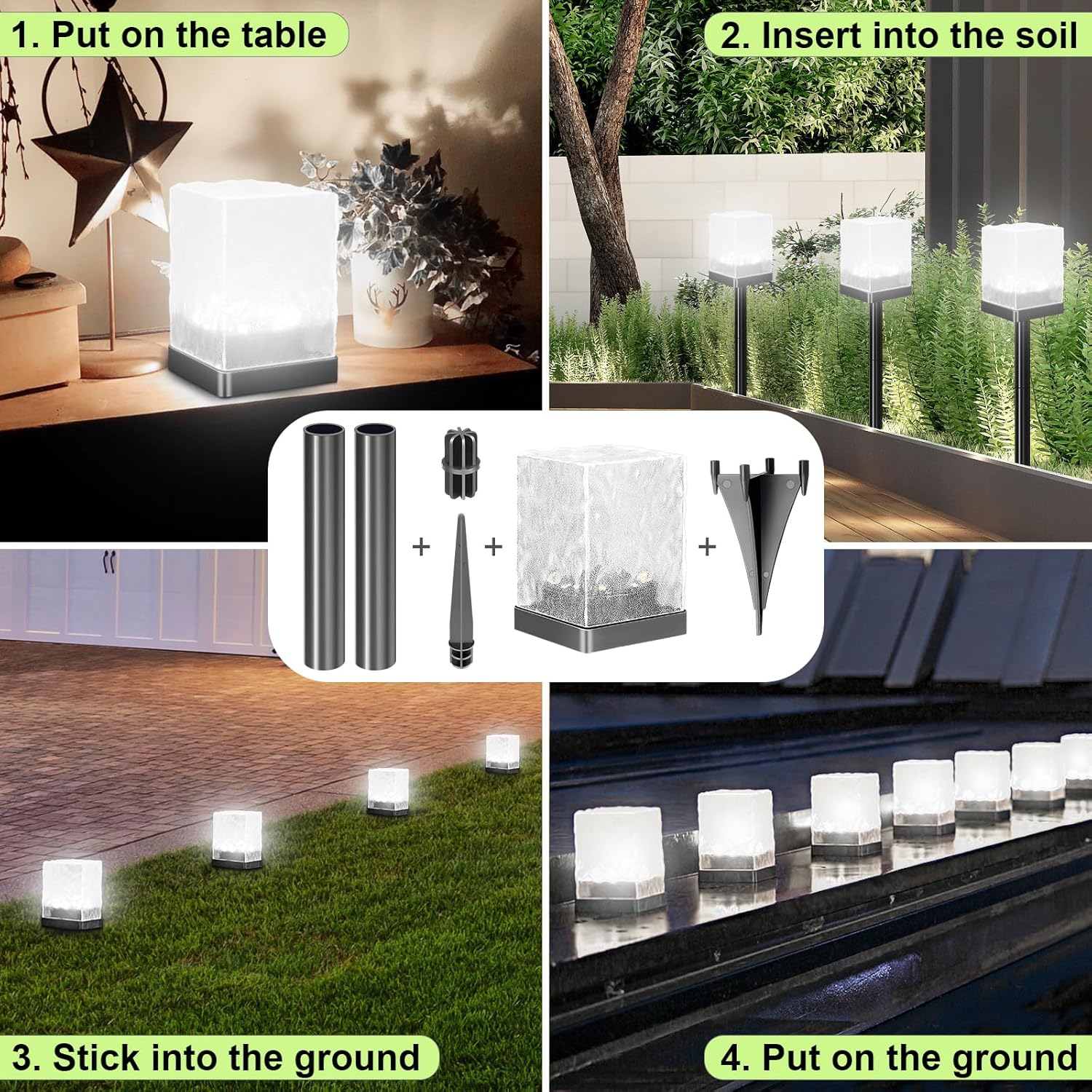 - Outdoor Garden Decoration: AIRREIK solar garden lights are available in two colors: cool white and warm yellow. Each module can create dazzling visual effects. Ice brick solar lights are perfect for romantic occasions and candlelight dinners, and these are also essential outdoor decorative lights for holidays such as Christmas and Halloween. Of course, our solar outdoor lights can also be given as gifts