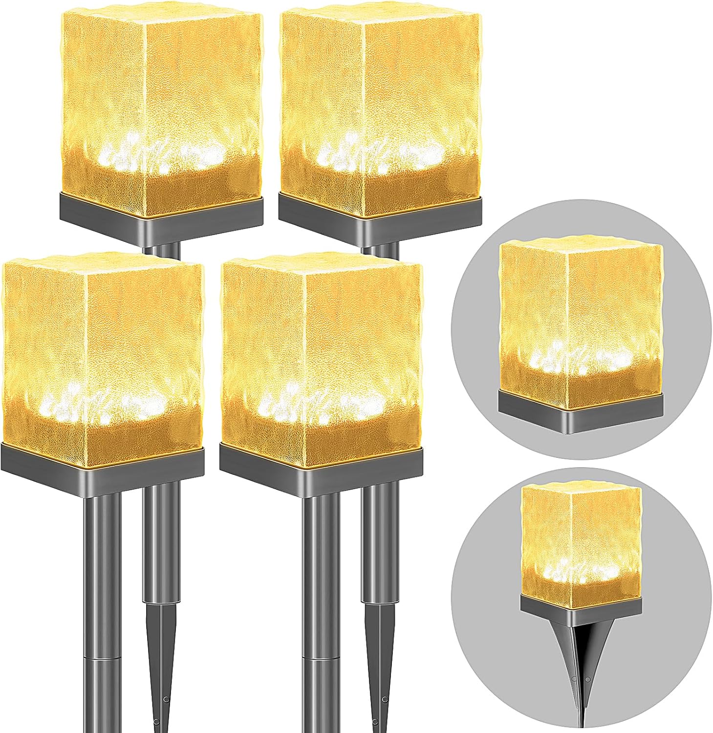 4 Pack Solar Pathway Lights Outdoor, Waterproof Ground Light Featuring Crystal-Clear Ice Brick Aesthetic, Multi-use Landscape Decoration Lighting Solar Powered Garden Lawn Lamp (Warm White)