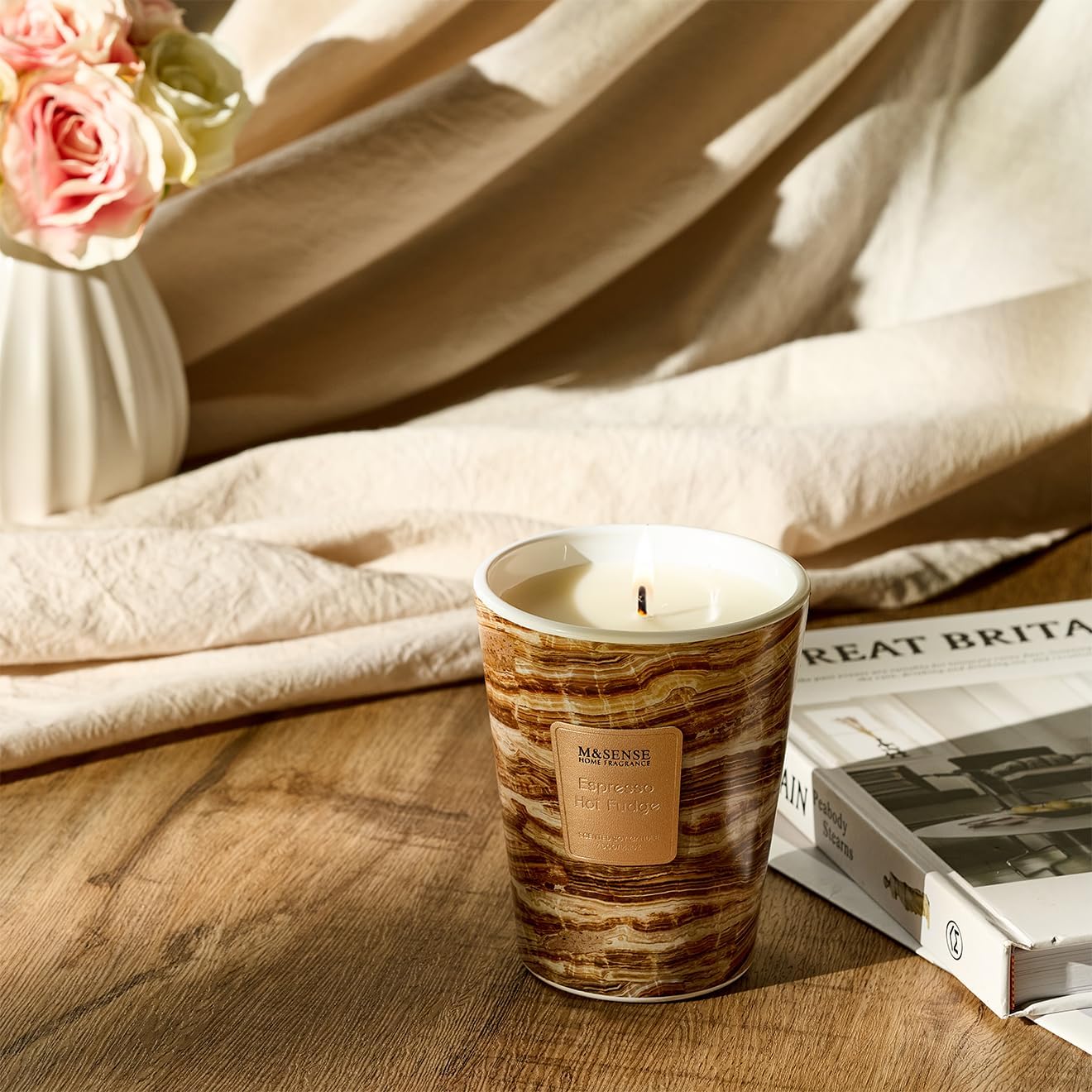 M&SENSE EspressHotFudge Scented Candles for Home, Lead-Free Wick Highly Scented Jar Candles, 14.1 Oz 80 Hours Lasting Burning Candles Gifts for Women, Relaxing Aromatherapy Candle for Stress Relief