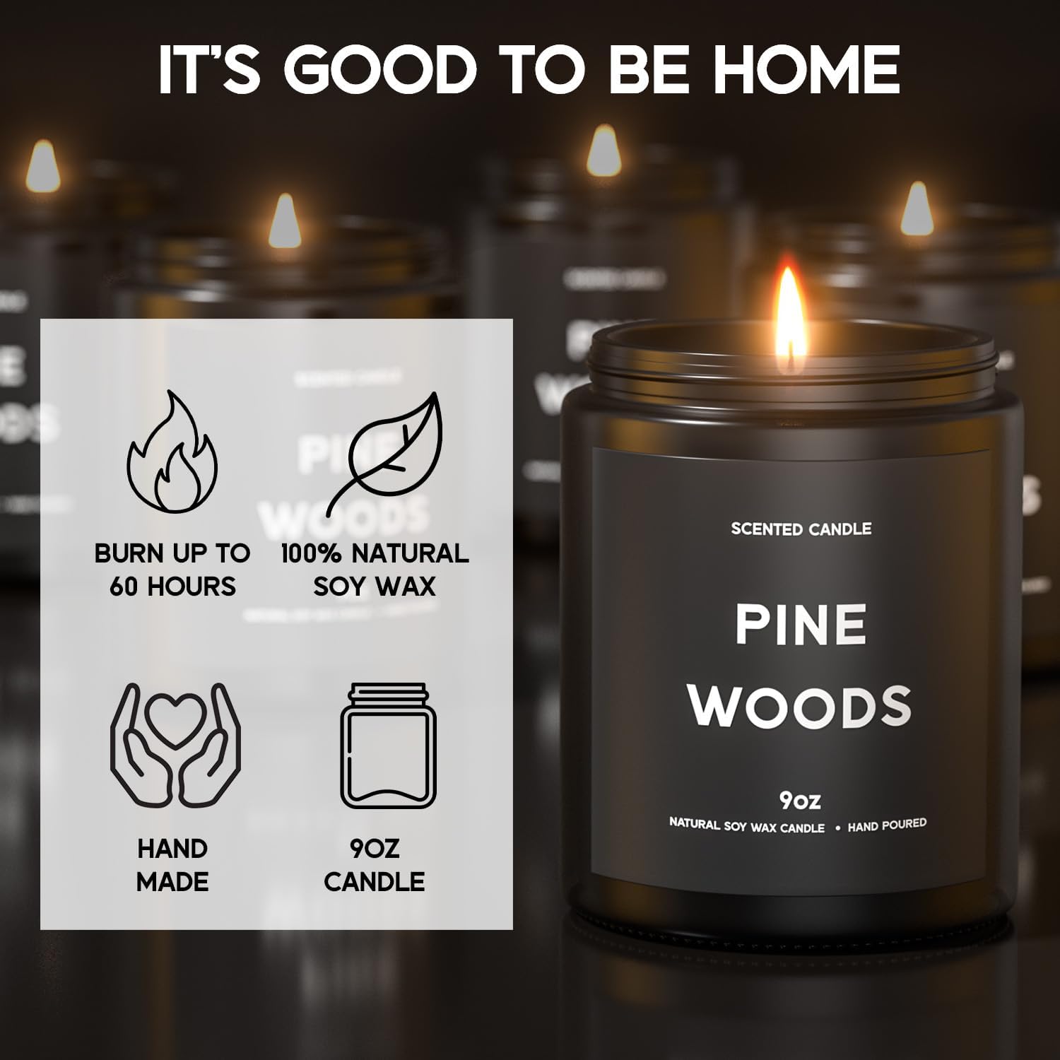 Pine Woods Candle, 9oz Scented Candle for Men, Scented Candles for Home, Gifts for Men, Personalized Blessing Minimalist Men's Gifts