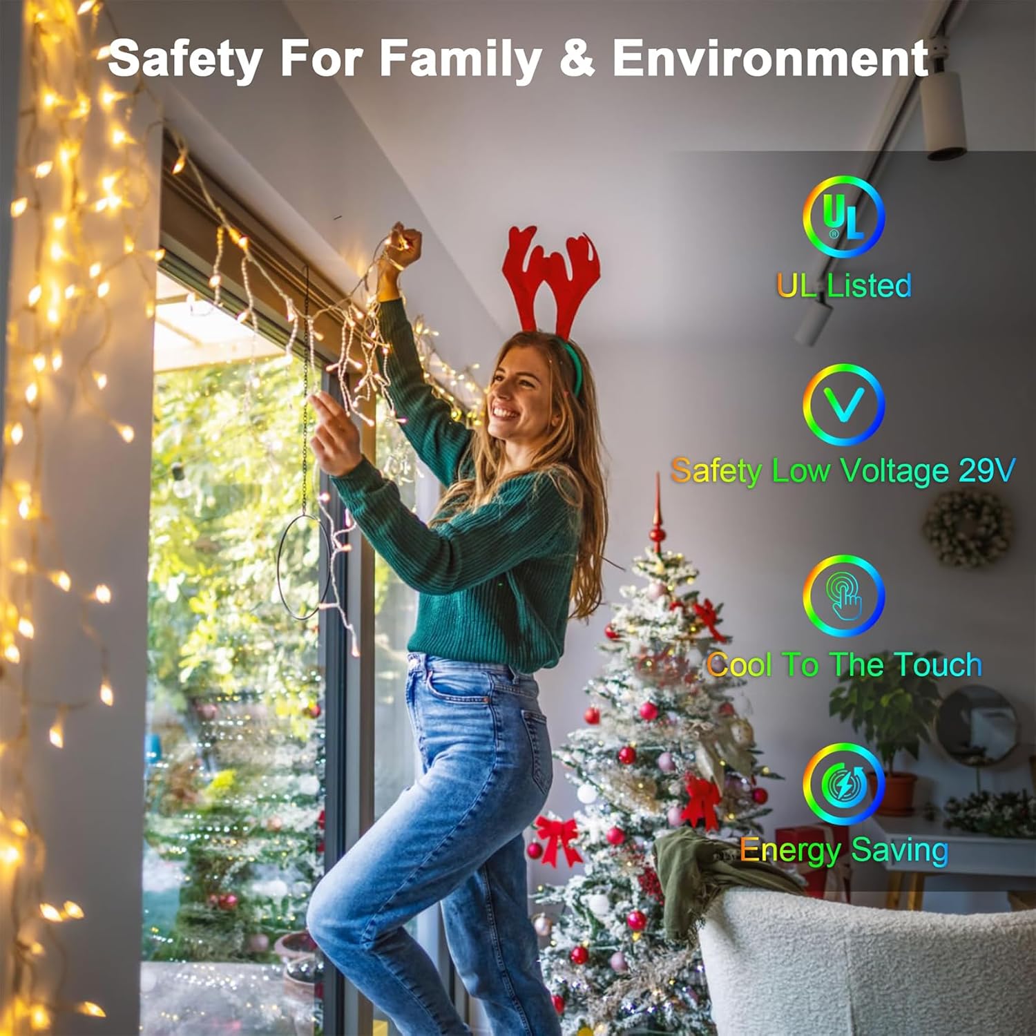- Our LED Christmas lights are constructed for both safety and durability. The soft and gentle illumination is designed with families in mind, operating on a safe 29v low voltage. This, paired with cool-touch technology and minimal heat emission, makes our lights not only safe for interaction from children and pets but also a worry-free option for your decorative needs.