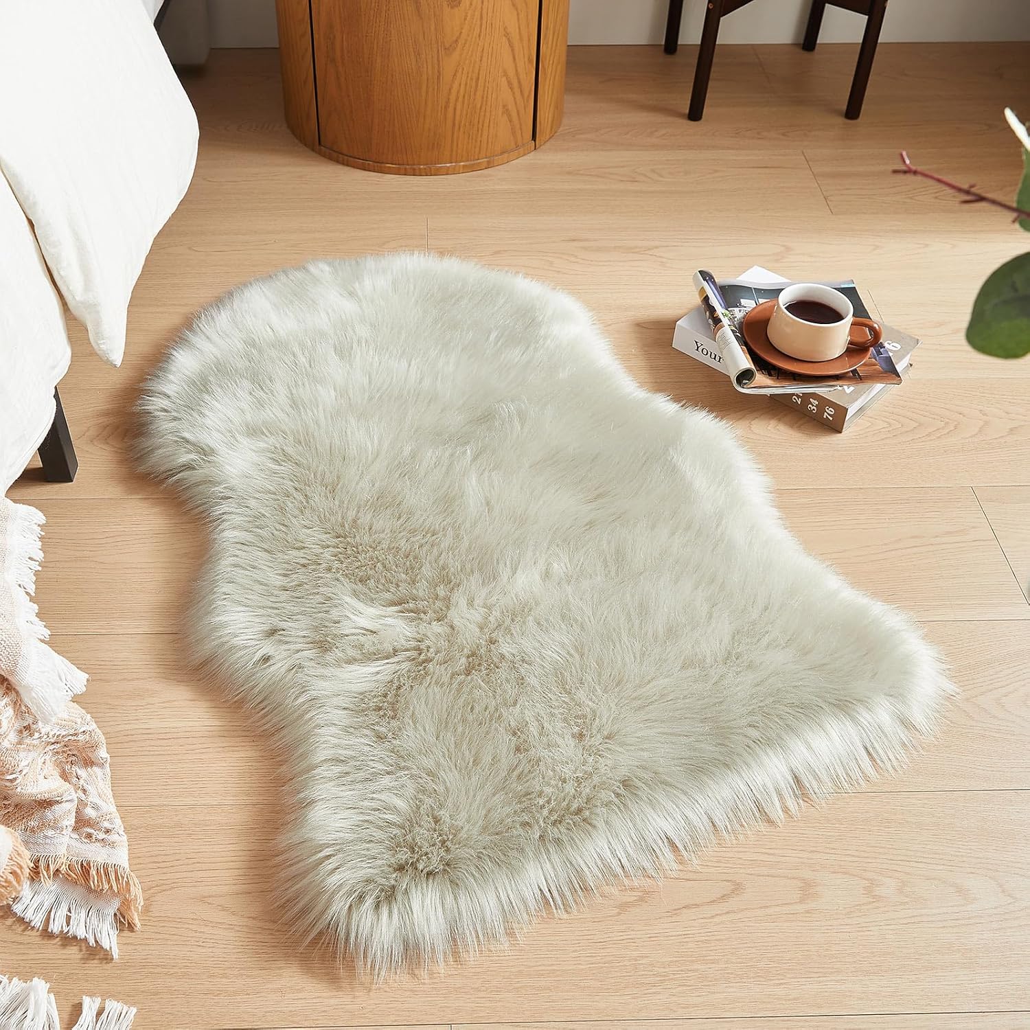 - 【Ultra-Plush & Hypoallergenic Faux Fur Rug】Crafted from premium faux sheepskin fur (like a sheepskin rug), this fluffy rug features 2.8-inch high-density shag rug pile for cloud-like softness. Made of 100% polyester fiber, it's hypoallergenic, no shedding, and safe for kids, pets, perfect as a bedroom rug or living room rug.