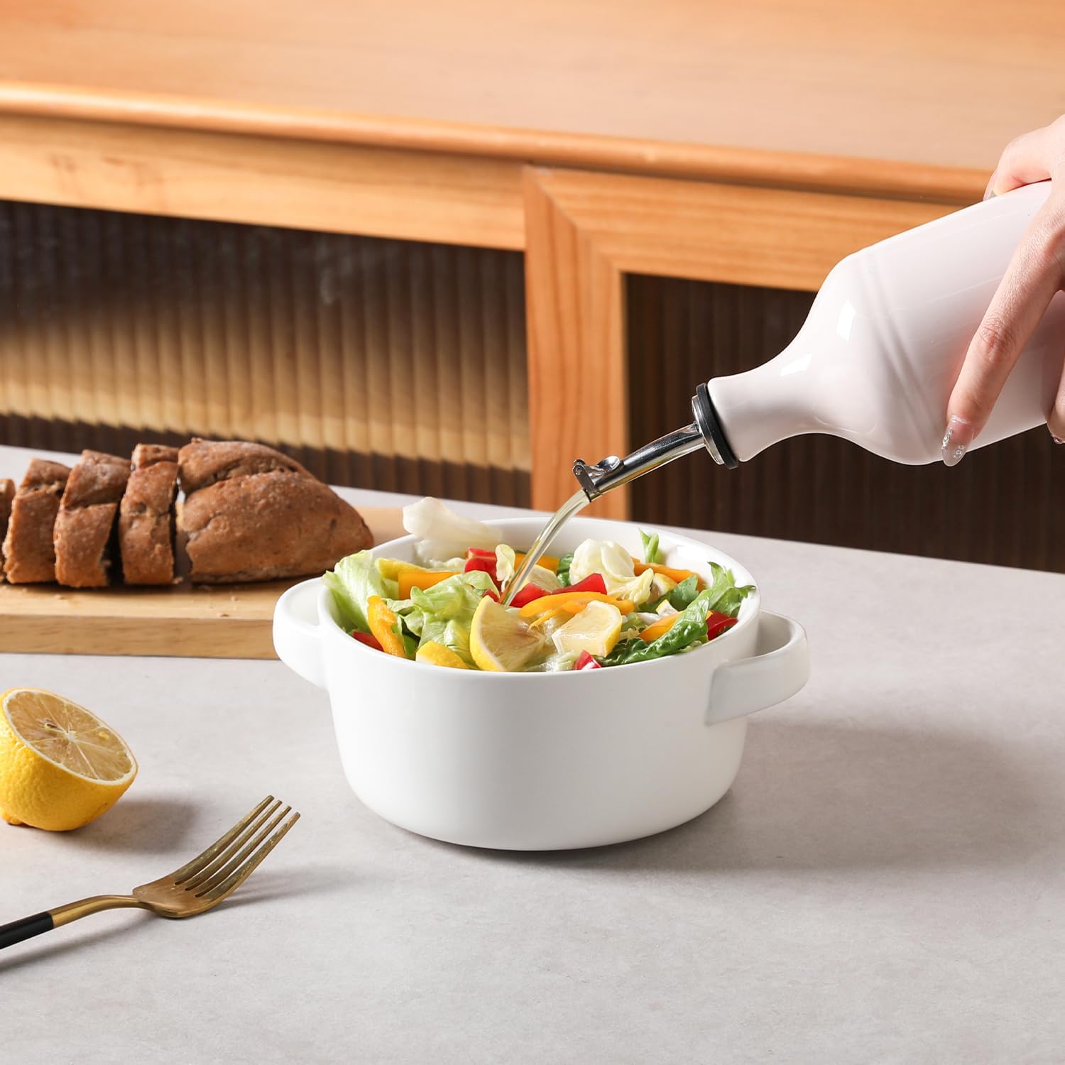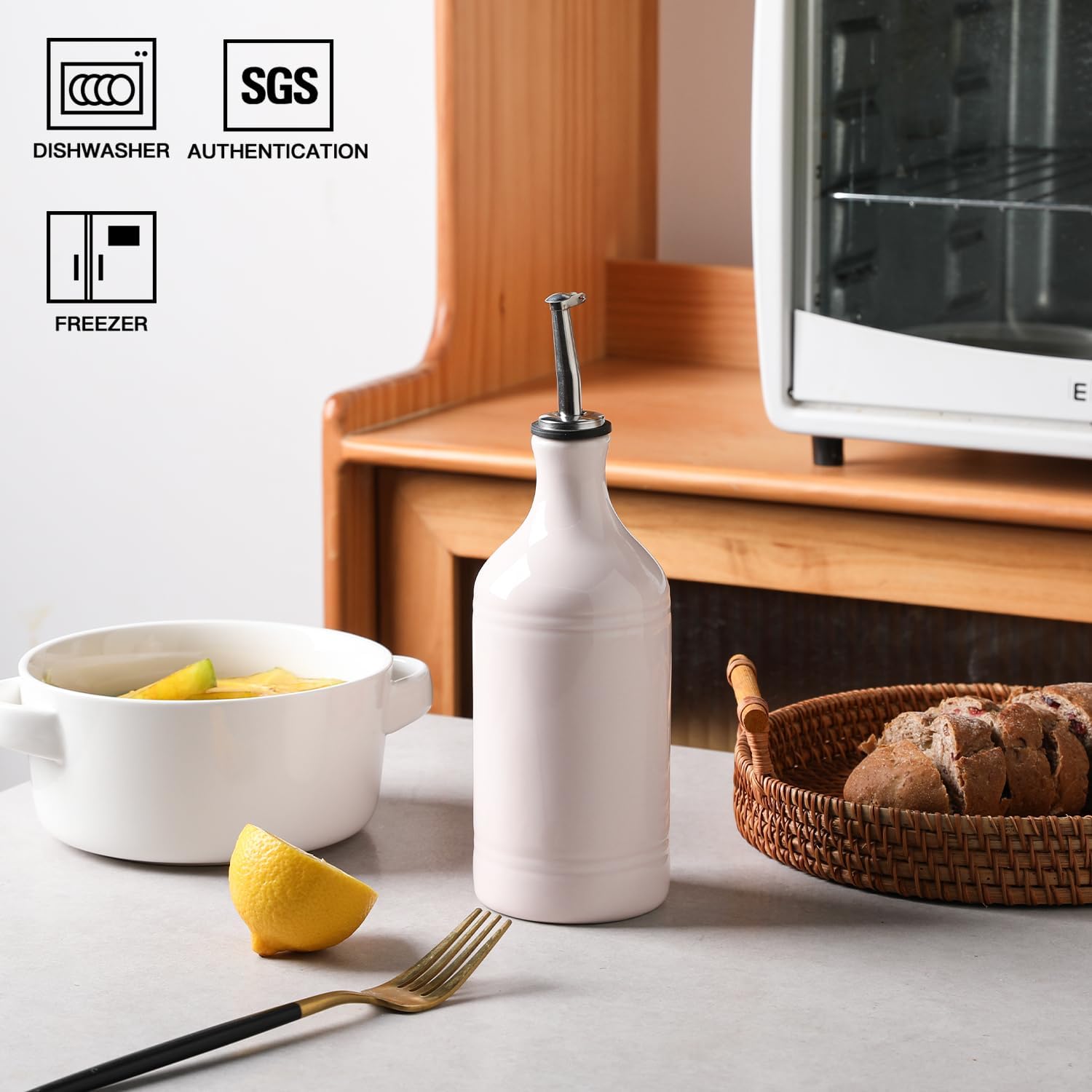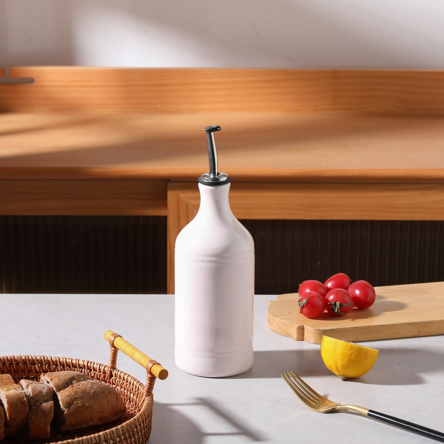 - Leak Proof & Keep Liquid Fresh - The bottle is made of durable ceramic that creates a smooth glaze. And the opaque porcelain bottle protects the oil from light and makes it last longer.