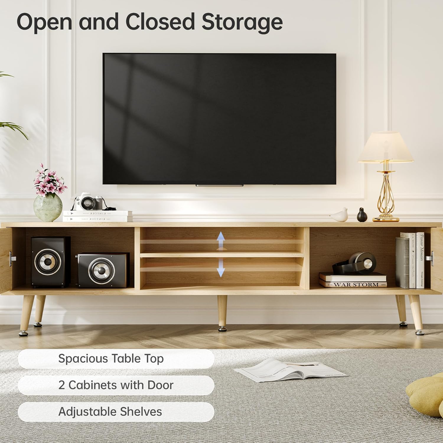 Mid Century TV Stand, Modern TV Console for TVs up to 70 Inches, Entertainment Center with Storage, TV and Media Consol, 62 Inch (Oak)