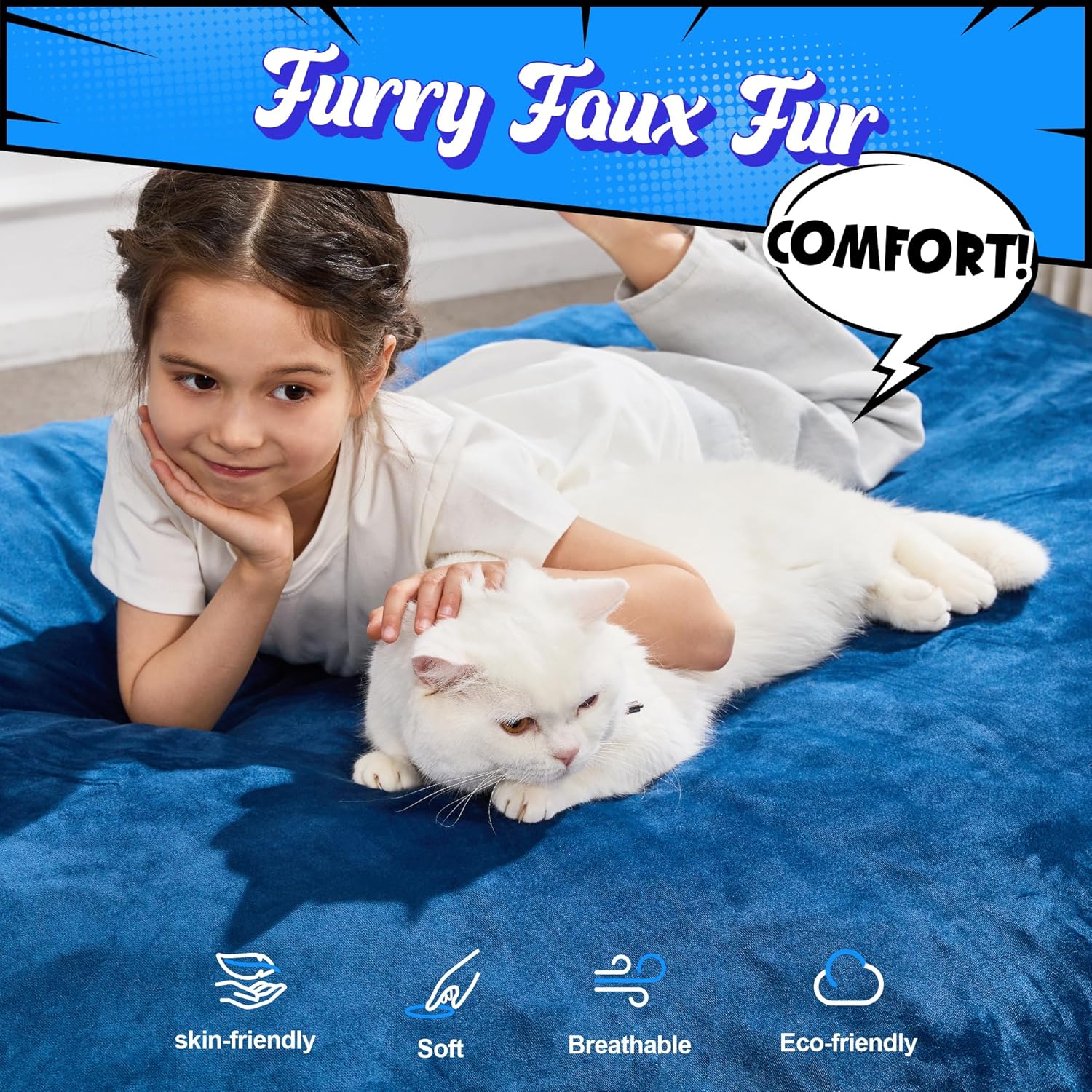 Hobestluk 3 in 1 Bean Bag Chair Giant Bean Bag Chairs for Adults with Velvet Cover Convertible Bean Bag Floor Cushion with Machine Washable Cover for Living Room (Velvet Blue)