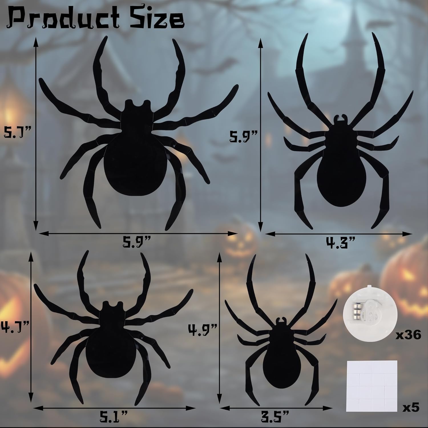 - Excellent Material: Made from high-quality PVC material, these spider Halloween decorations are lightweight yet sturdy, ensuring long-lasting use. They are removable and reusable, suitable for Halloween window clings, wall decals, and party props year after year.