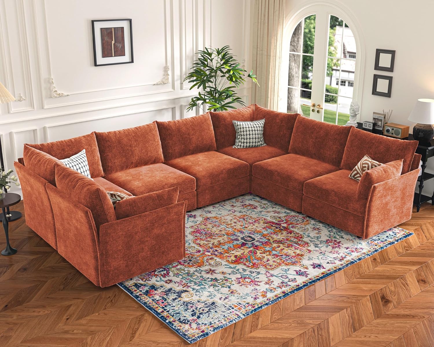 136.4" Oversized Modular Sectional Sofa, U Shaped Convertible Couch with Movable Ottoman, Large 7 Seat Corner Couches for Living Room Deep Seat Terracotta Orange Chenille