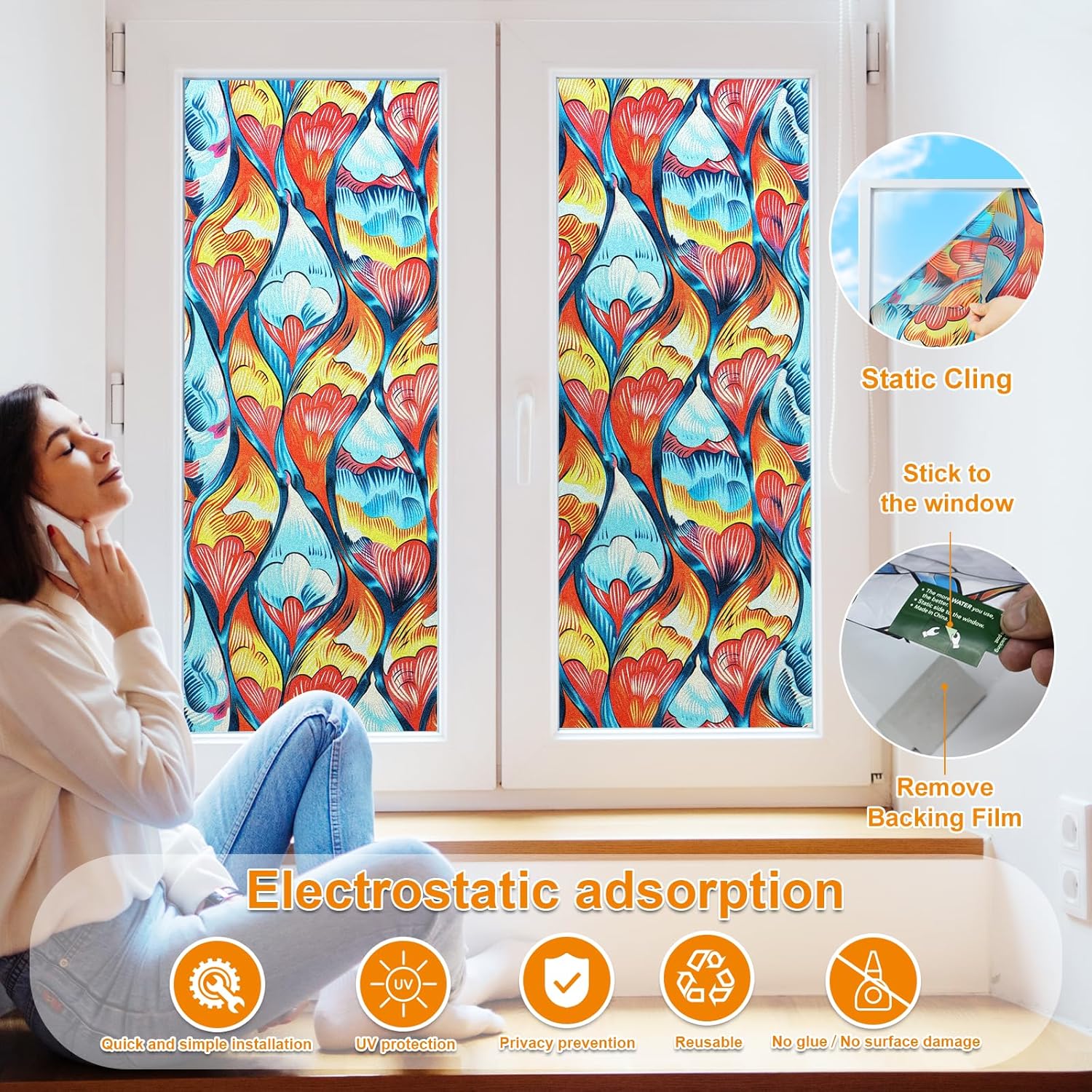 - 【Abstract Tulip Design】Premium HD printing abstract tulips. Stained glass film vibrancy meets Art Nouveau revival - Our frosted film breathes life into tulips with nature-inspired curves, where glittering under sunlight.