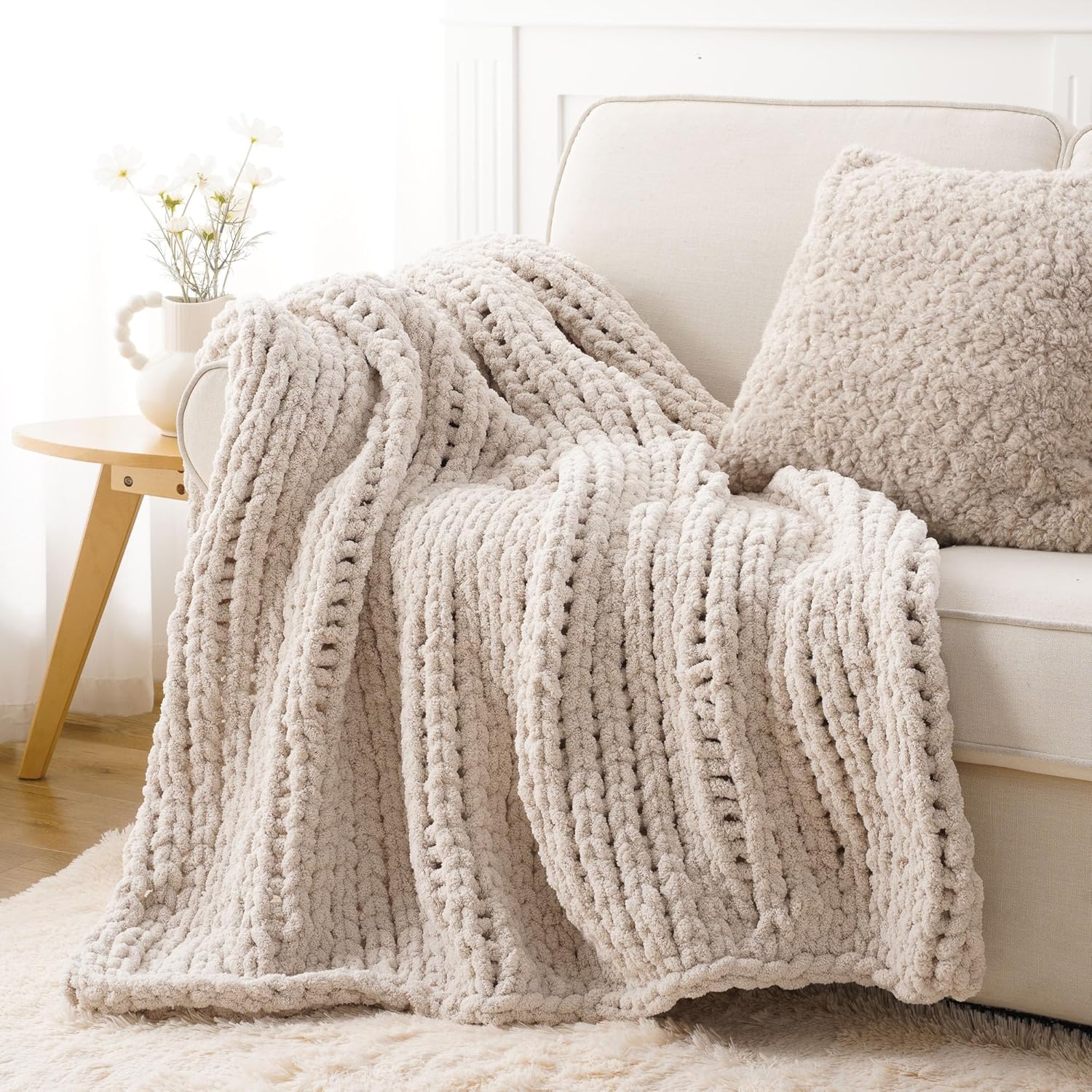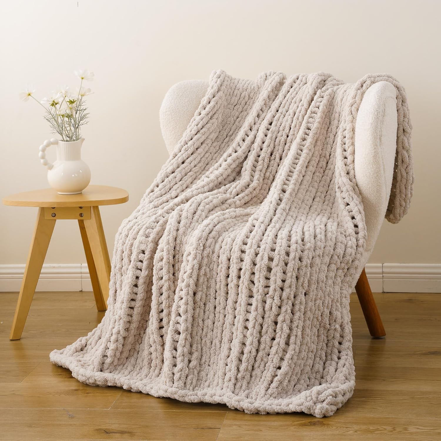 - 【Non-shedding & No pilling】Unlike other blankets, this chunky knitted blanket is designed with high quality chenille fabric that prevents shedding. You can enjoy its embrace without having to worry about shedding hair or lint!