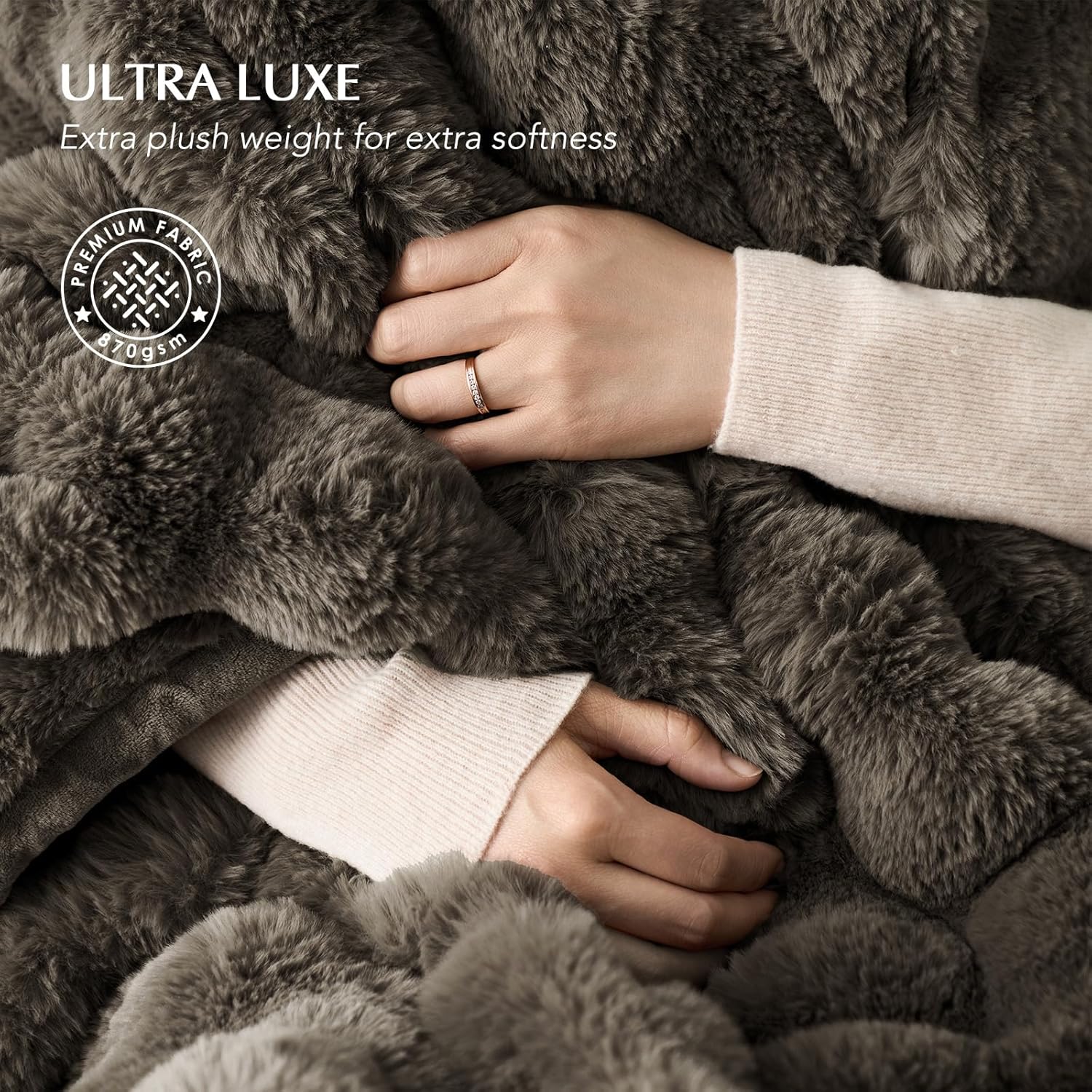 EVERGRACE Ultra Soft Luxury Fluffy Faux Rabbit Fur Throw Blanket, Thick Warm Fuzzy Blankets for Bed, Cozy Plush Reversible Blanket for Couch, Chair, Sofa, Dark Taupe, 60x80 Inches, 870 GSM