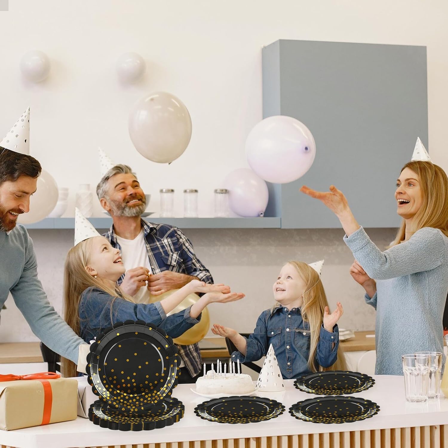 - 【FOR EVERY EVENT】: Elegant black and gold plates for party is great for everyday and party use, like retirement parties, aniversary parties, graduation Parties, cocktail evenings, BBQ parties, family gatherings, bar decorations, picnics, elegant bridal showers, afternoon tea parties, birthdays, holiday celebrations, Christmas, New Years, and other occasions and events.