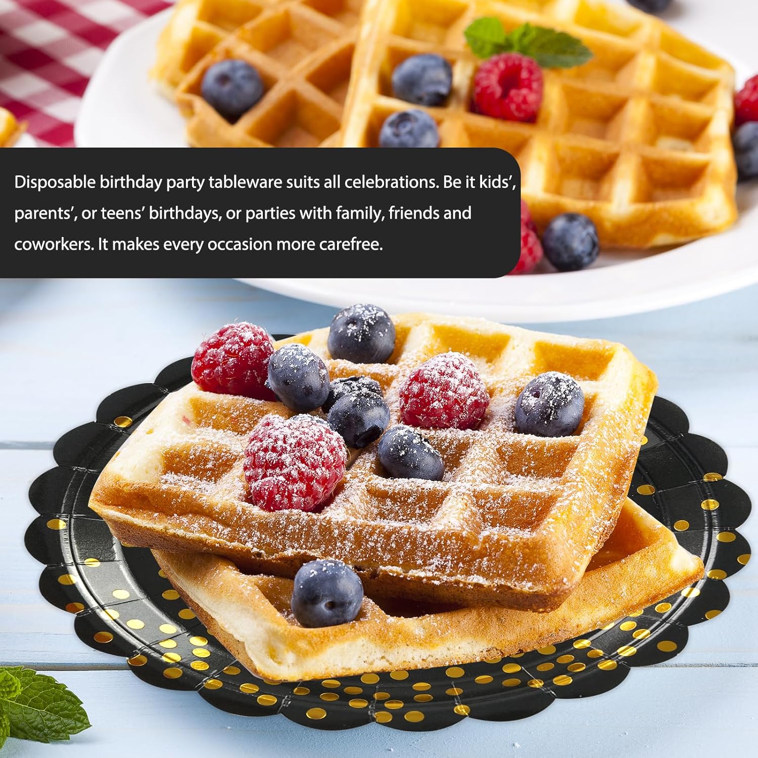 50PCS Black and Gold Paper Plates, 7 Inch Black Scalloped Party Plates Disposable Dessert Plate Cake Plate for Graduation Retirement Aniversary Birthday Dinner