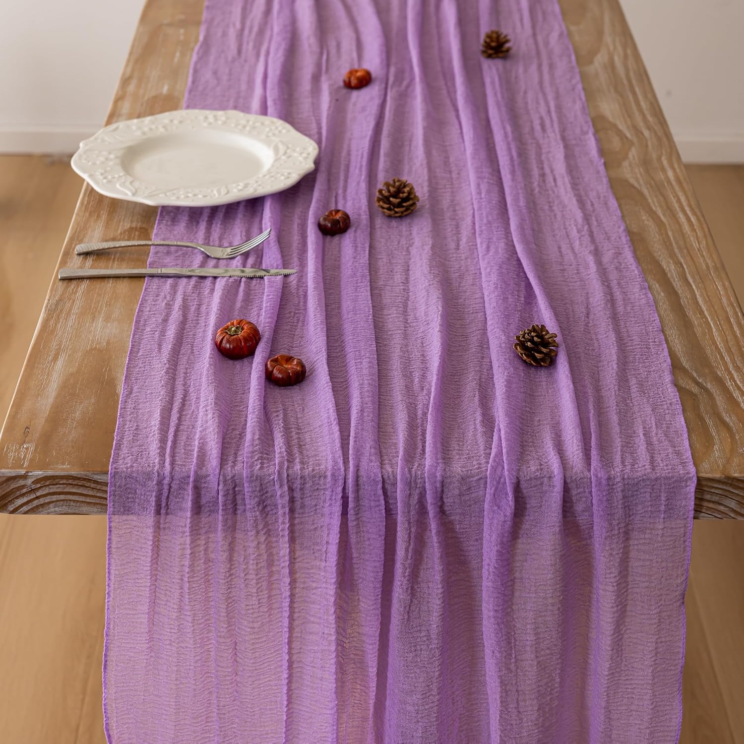 3pcs Lilac Gauze Rustic Cheesecloth Table Runner 120 Inch 10 FT for Wedding Baby Shower Bridal Shower Birthday Engagement Garden Outdoor Party Long Sheer Boho Decorations