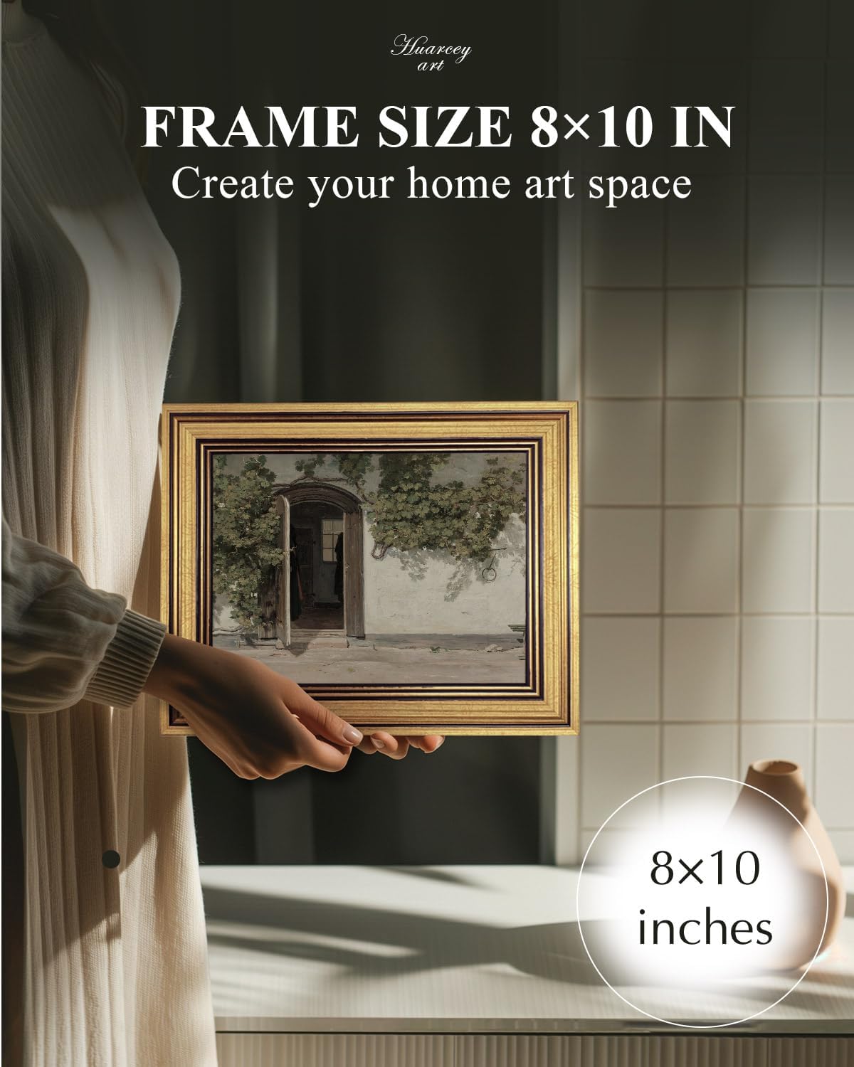 HUARCEY Gold Framed Vintage Wall Art Vineman Climbing The Walls Farmhouse Wall Decor Opening Door Oil Painting Picture Canvas Print Art Home Decor Aesthetic for Bedroom Bathroom Office 8x10in