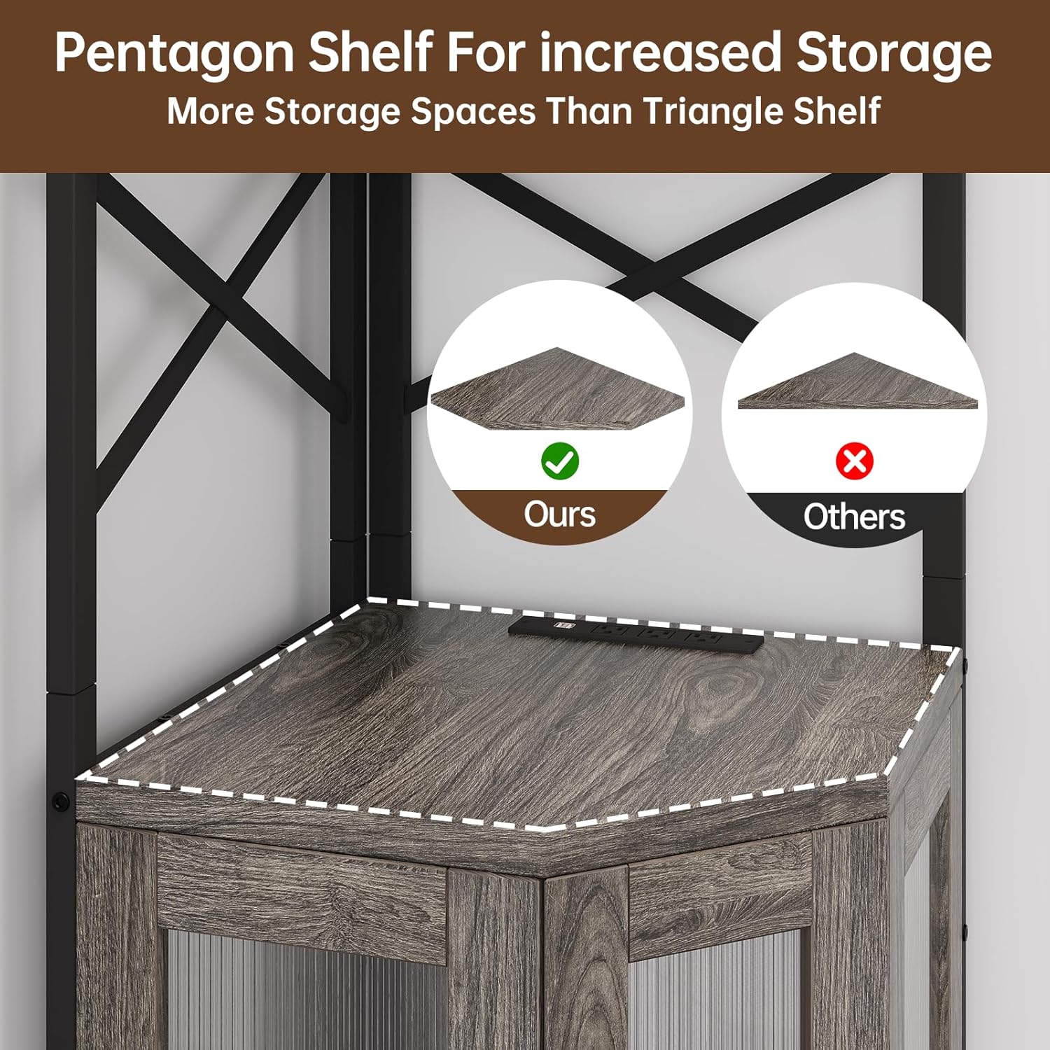 - 【Corner Bar Cabinet with Charging Station】 This corner cabinet features 3 power outlets & 2 USB ports, allowing you to conveniently charge coffee makers, blenders, phones, and bar accessories—no extra power strips needed! The 4.9FT cord provides flexibility, making it perfect for your home bar, kitchen, or living room. A must-have bar stand for home with smart functionality!